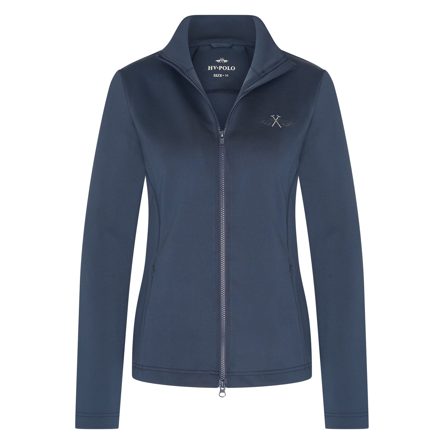 Introducing the HV Polo Lili Tech Cardigan - the ultimate blend of fashion and function. Made with tech jersey fabric, this cardigan features a 2-way zipper with a chin protector and a beautiful printed horse and rhinestone design on the collar. Stay cool and comfortable with perforated panels and hidden zipper pockets.
