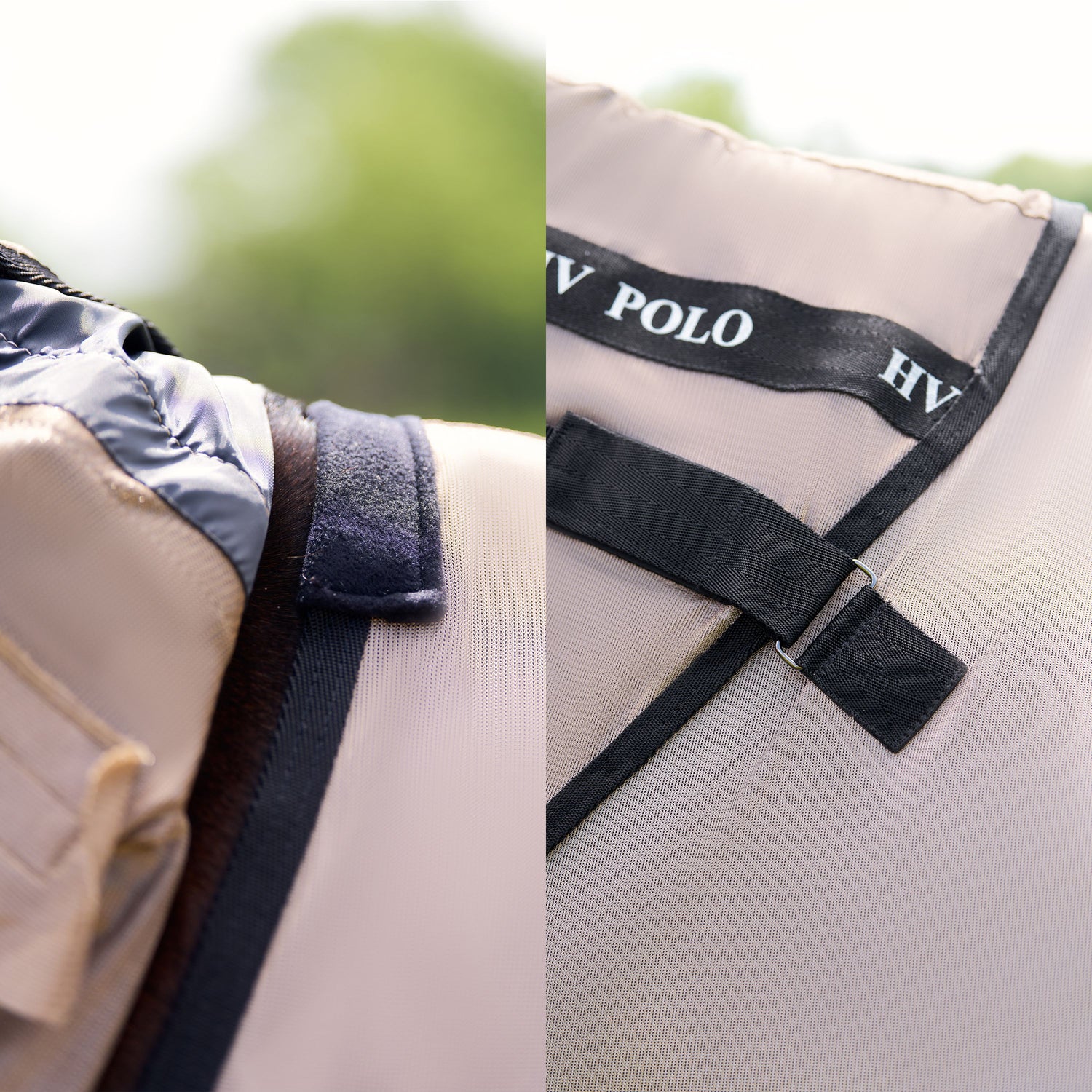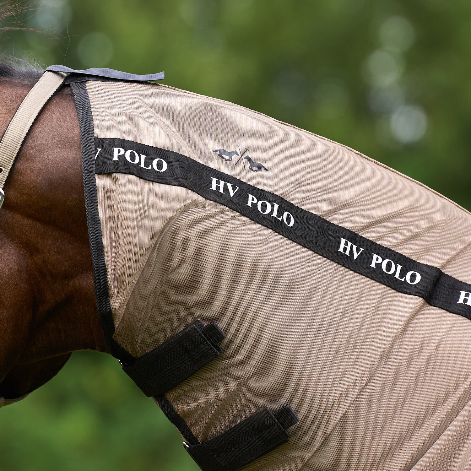 Protect your horse from pesky insects with the HV Polo Nena Fly Blanket. Equipped with a detachable neck and belly flap, this mesh blanket provides comprehensive coverage. The logo print and tape add a touch of style to functionality, keeping your horse comfortable and fly-free in warm weather.