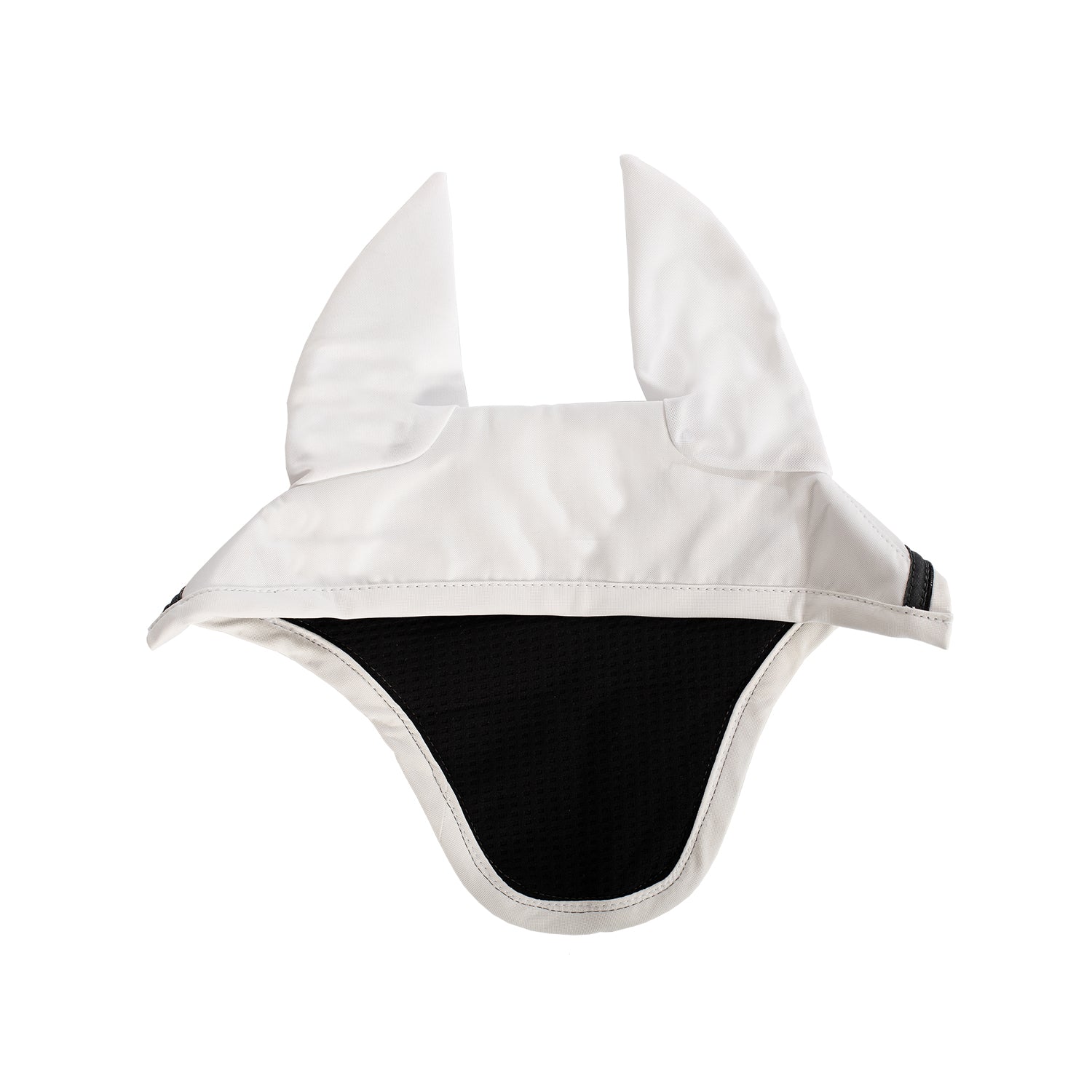 Elegance fly veil made of highly breathable and elastic technical fabric for a perfect fit. Fly veil with embroidered logo in technical fabric, designed to protect the horse's ears from insects and reduce noises.