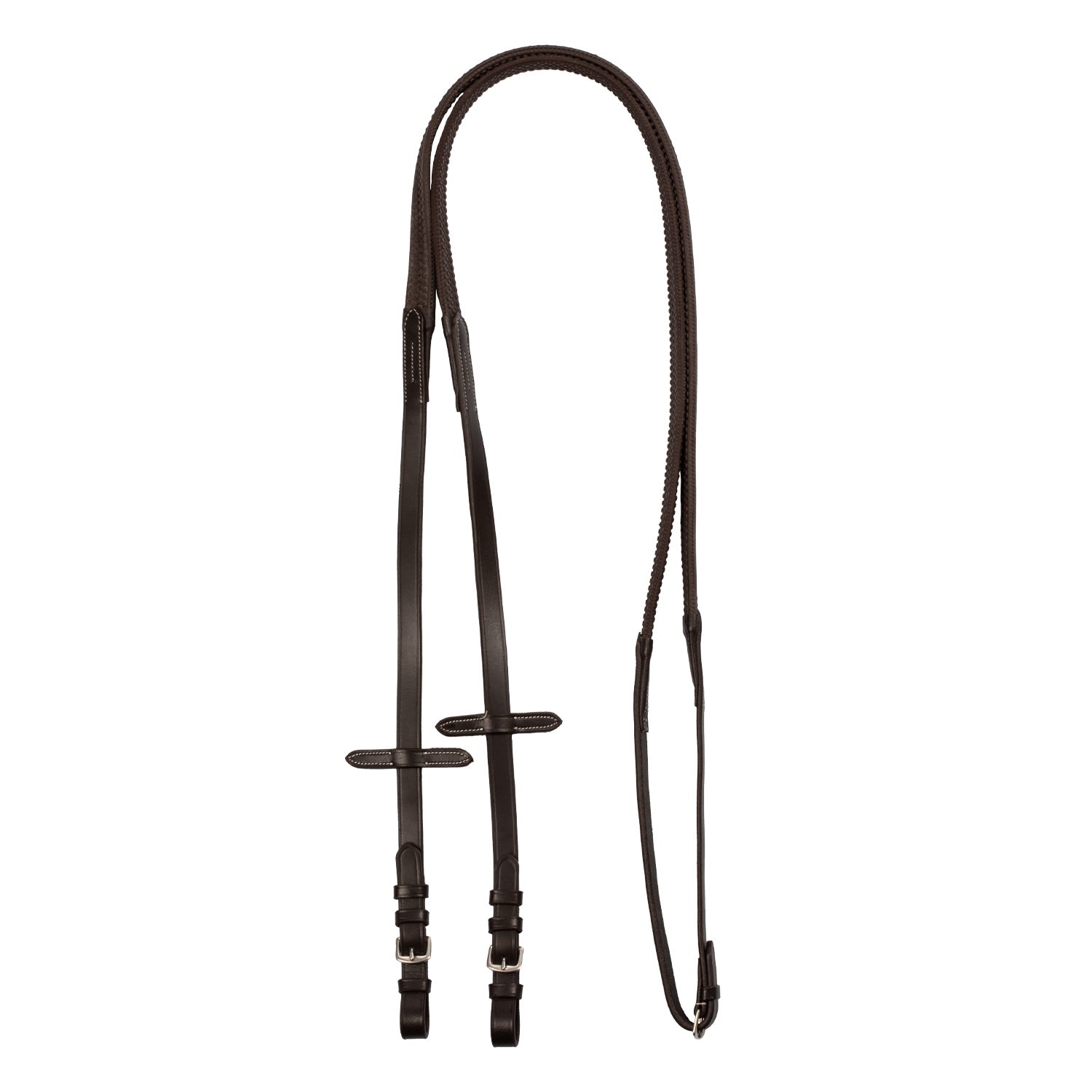Crafted from premium leather combined with durable rubber, these English bridle reins offer exceptional resistance and grip. Designed for both daily training and competitive riding, they ensure reliable control and comfort. The sleek silver fittings add a touch of elegance, making them a perfect blend of functionality and style for serious equestrians.