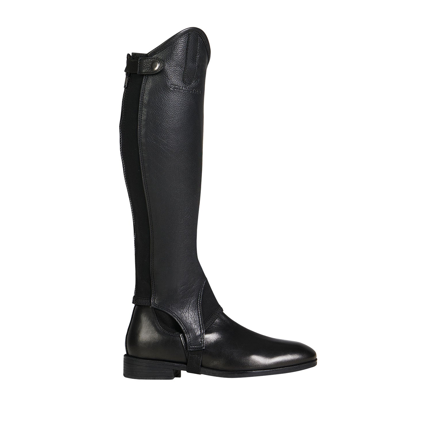 Crafted from premium Full Grain Calfskin, the Equestro Unisex Gaiters provide essential protection against stirrup leather friction during both training and competition. Designed with a back zip and elastic panel, they ensure a snug, comfortable fit tailored to your leg. Silicone inserts on the interior enhance stability and safety in the saddle, making these gaiters a reliable choice for riders seeking durability and performance.