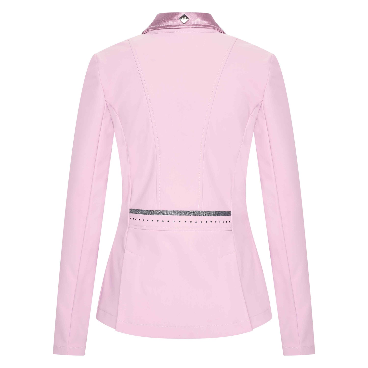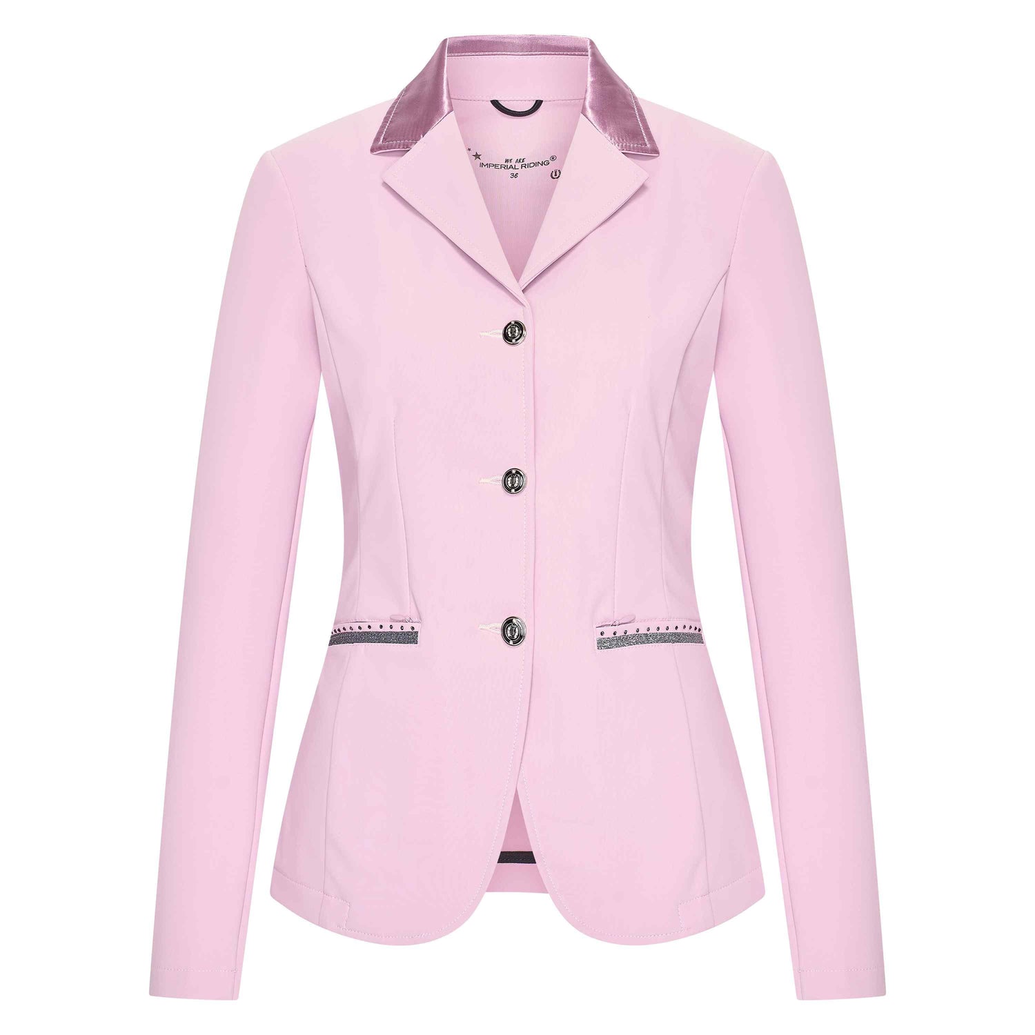Expertly crafted with a 4-way stretch fabric, the Imperial Riding Vive Capone Competition Jacket offers a polished and professional look. This competition blazer features a covered zipper and 3 visible buttons, as well as a sparkling Rhinestone logo artwork at the back. Attractive details, such as glittertape, pleats, and satin collar with Rhinestones, add a touch of elegance. Lined with stretch lining for ultimate comfort, this jacket also includes 2 weltpockets with blind zipper closures for secure storage. Perfect for the show ring, this jacket combines both style and functionality.