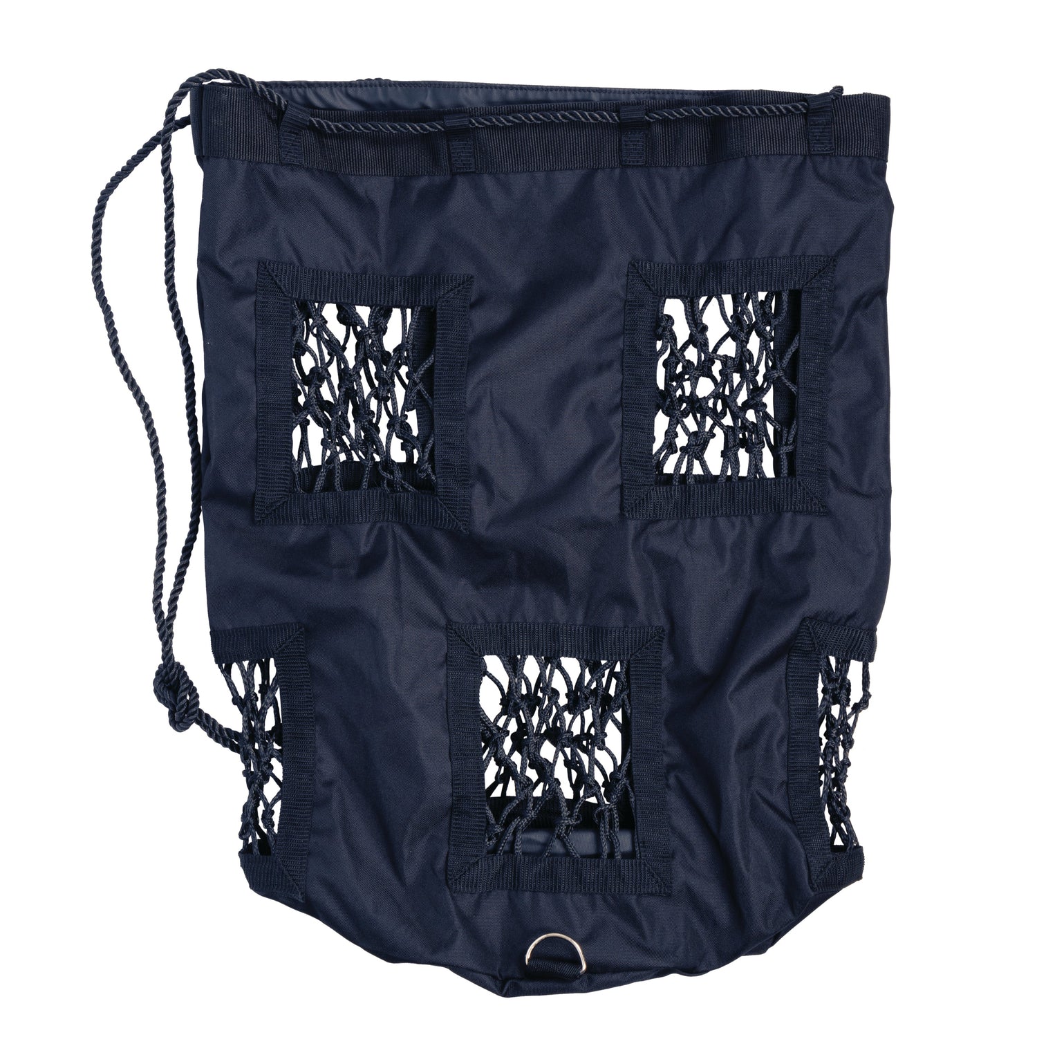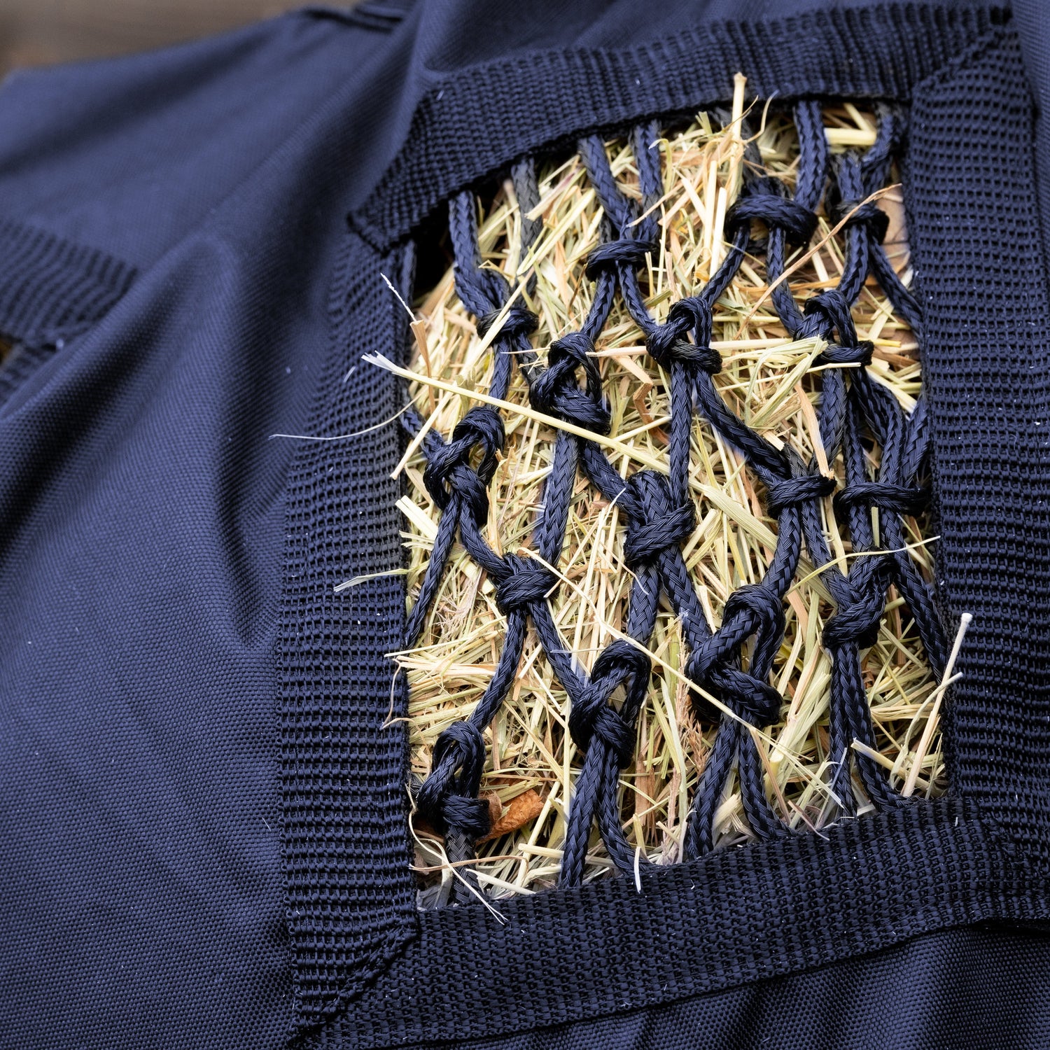 Made from a waterproof, 1680 denier fabric with reinforced rectangular holes covered with individually crafted 4cm holes to slow hay consumption and trickle feed your horse or pony, ensuring better digestion and less waste on the floor. A great enrichment tool.