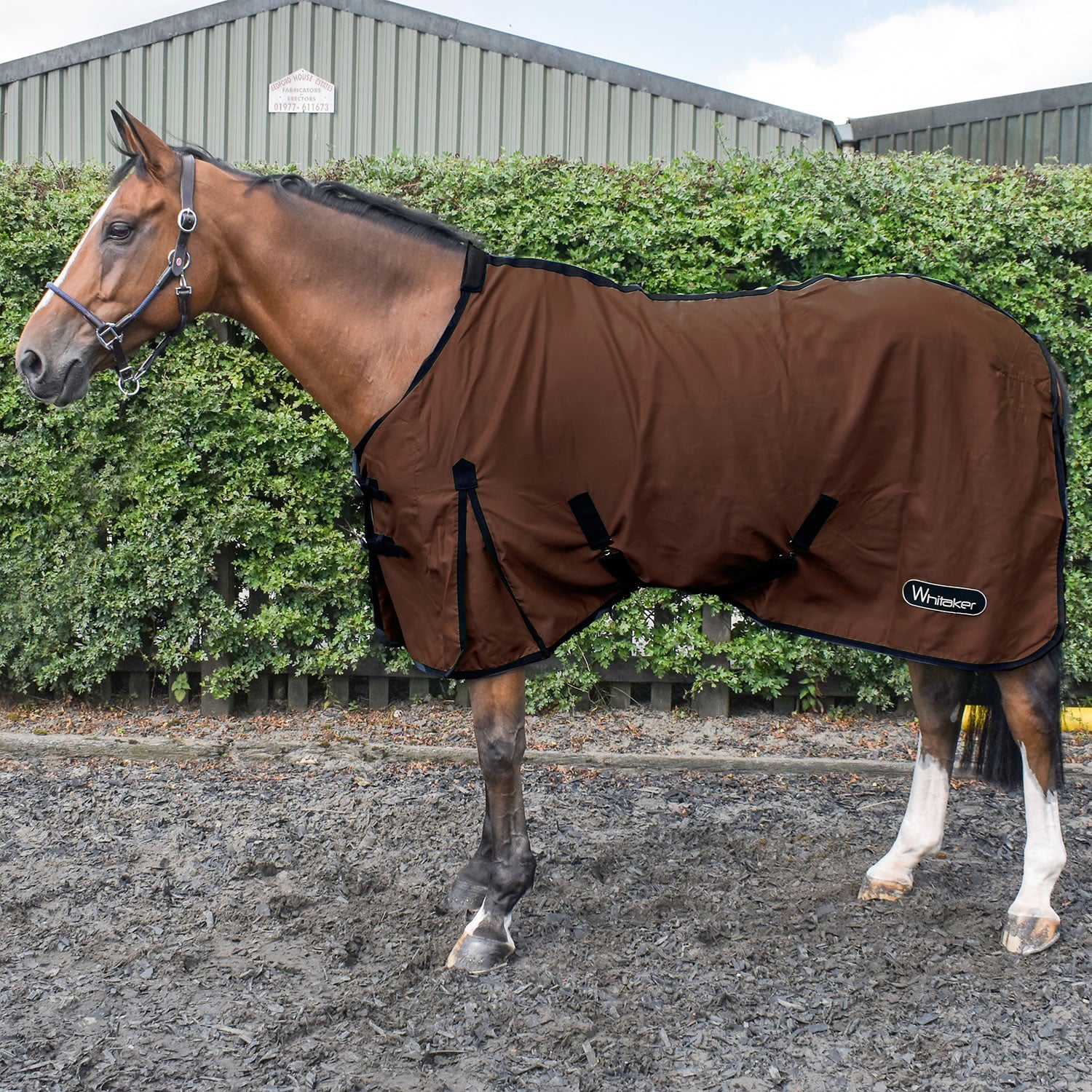 This breathable, functional sheet is perfect for use as an under rug or as a lightweight summer sheet. Featuring a cotton outer, shoulder gusset, rubber Whitaker badge, two buckle chest fastenings with velcro, crossed belly surcingles and fillet string.
