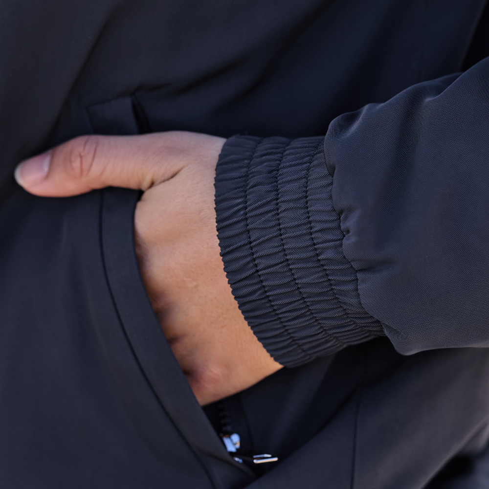 With a 5,000mm waterproof rating, you’ll stay protected from the rain, while the PFC-free showerproof finish makes this an eco-conscious choice. Thoughtful details such as the fleece-lined collar and pockets provide extra comfort, while internal chest and side zip pockets keep your essentials safe and close to hand. Finished with a sleek tonal silicone chest print, this jacket combines functional performance with refined style – ideal for both the yard and beyond.