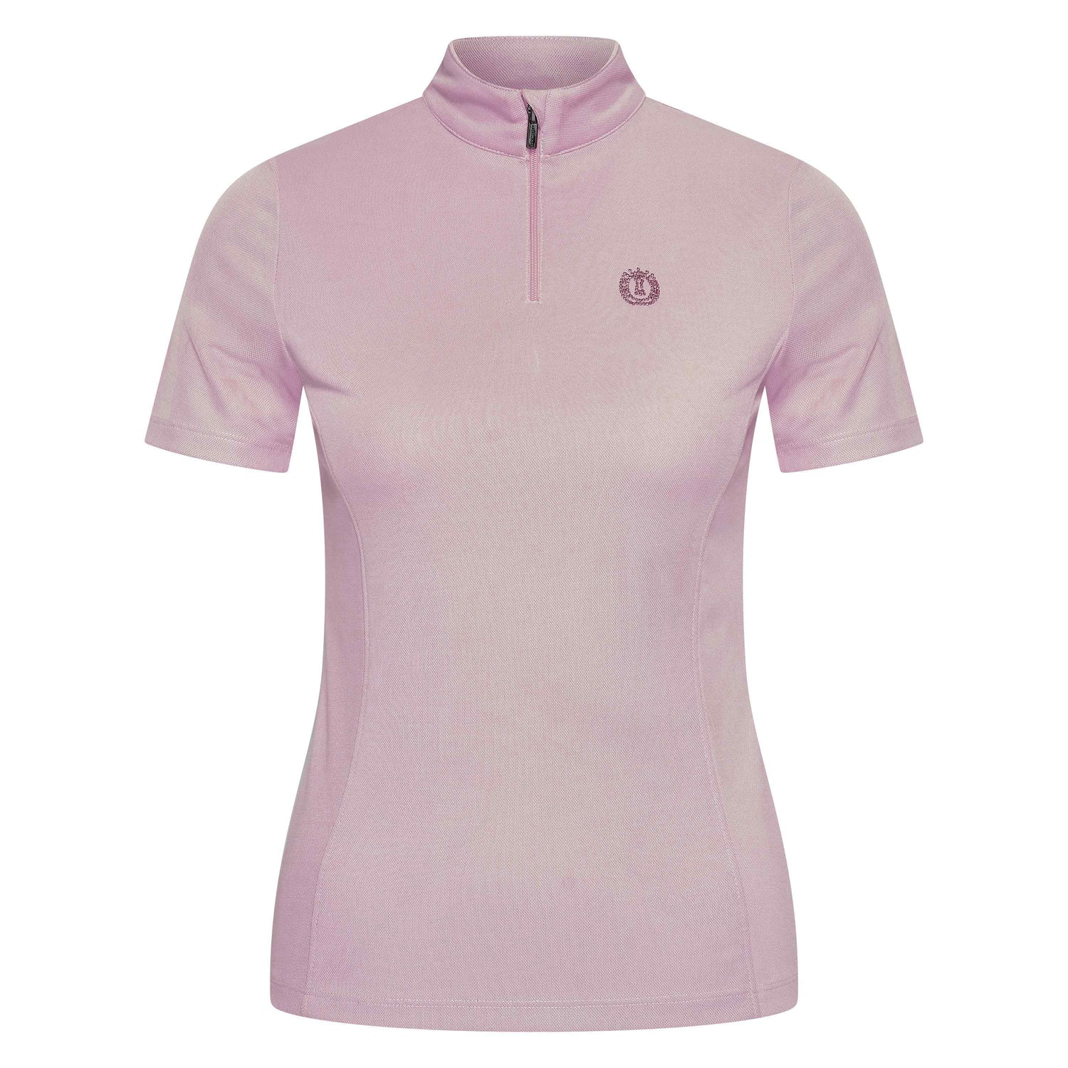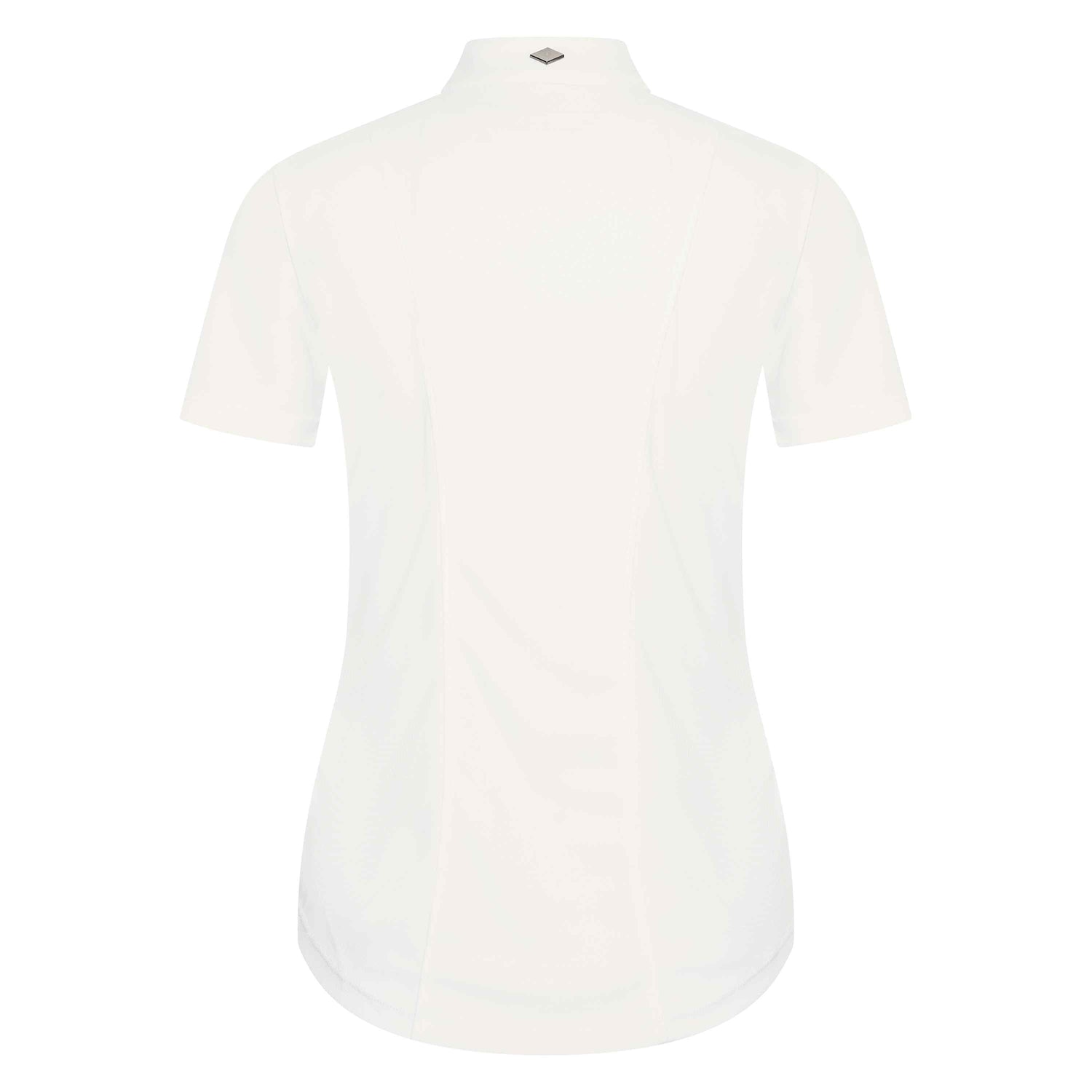 Elevate your style with exquisite short sleeve top made from a luxurious fine pique fabric. This lightweight top features a sleek standing collar complete with a half zipper enclosure for a touch of modern sophistication. The left chest is adorned with a dazzling crystal stone logo artwork, adding a touch of glamour to your outfit. And for a final touch of elegance, a metal IMPERIAL RIDING plate is placed on the collar at the center back. Make a statement with top that seamlessly combines fashion and functionality.