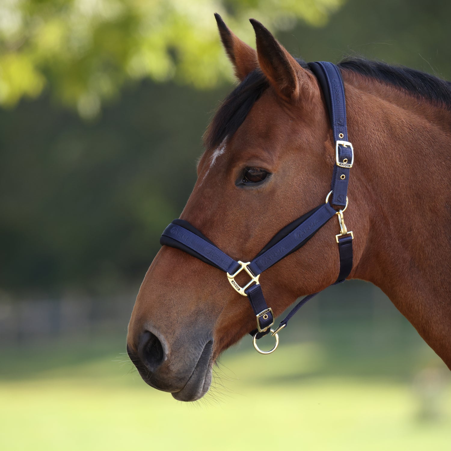Promoting comfort, the ARMA padded headcollar features low friction neoprene padding at the head, nose and cheeks features soft roll-away edges to remove cut-in sides and create a cushion effect. Attractive self-colour jacquard signature ARMA webbing features at the head, nose and cheeks to add style. Adjustable both sides of the headpiece and at the backstay with a convenient clip-on throatlash. High shine brass colour signature ARMA buckles and hardwear. Brass colour eyelet reinforcements.