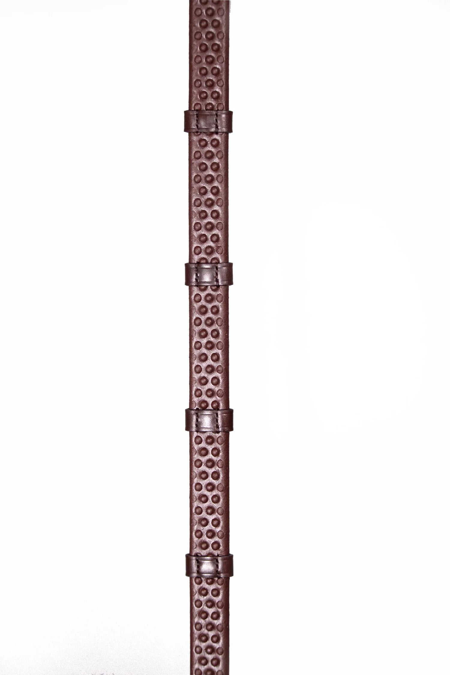 These reins feature Biothane® rubber pimples with hand stitched leather stoppers every 5cm. A very thin and flexible rein more suited for dressage and flatwork.