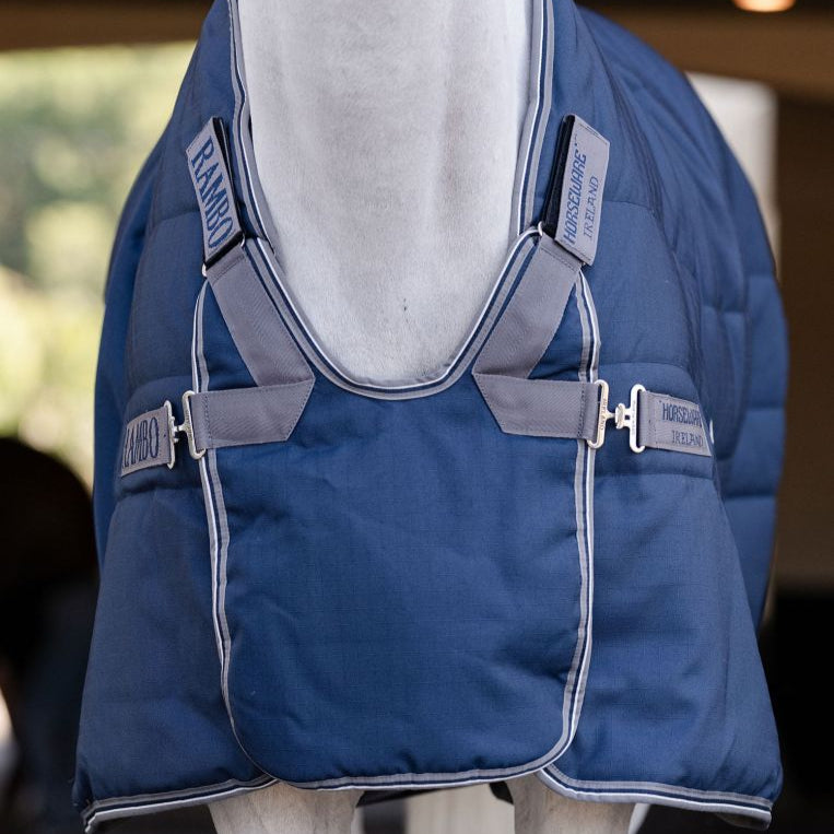 Horseware Ireland Rambo Optimo 400g Plus Stable Rug - Navy/Thunderstorm Grey/Silver / 5'9 is backordered and will ship as soon as it is back in stock.