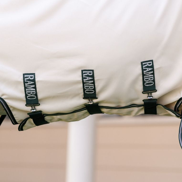 Created to keep the smallest of flies at bay, as you've come to expect from the Rambo® range, this rug is made to last, presenting excellent value! Made of a soft and very durable 1000D Polyester with close woven fabric so biting insects can’t get through. The design of this rug gives your pony comprehensive coverage with an integrated neck cover to go over ears, extended belly coverage with Velcro closures and a generous tail flap and tail strap.