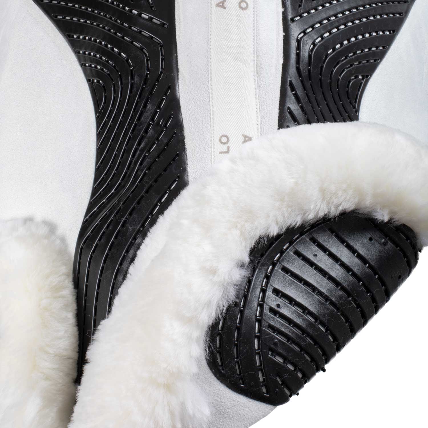 The Acavallo Saddle Pad JS-S CW-CS Cut-Out Numnah features classic withers and spine design, combining faux sheepskin softness with twin-sided suede and gel grip for superior stability. Its double layer of Acavallo® anti-slip, shock-absorbing therapeutic gel ensures a secure fit against both horse and saddle, minimizing movement during jumps. The faux sheepskin edging protects the horse’s skin from chafing and abrasions, enhancing comfort throughout your riding sessions. This saddle pad expertly balances style, comfort, and safety, making it an ideal choice for serious jumpers.