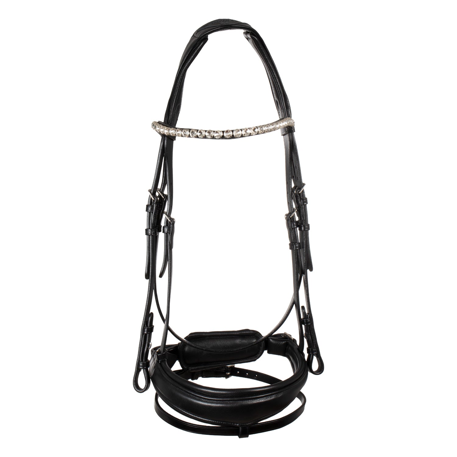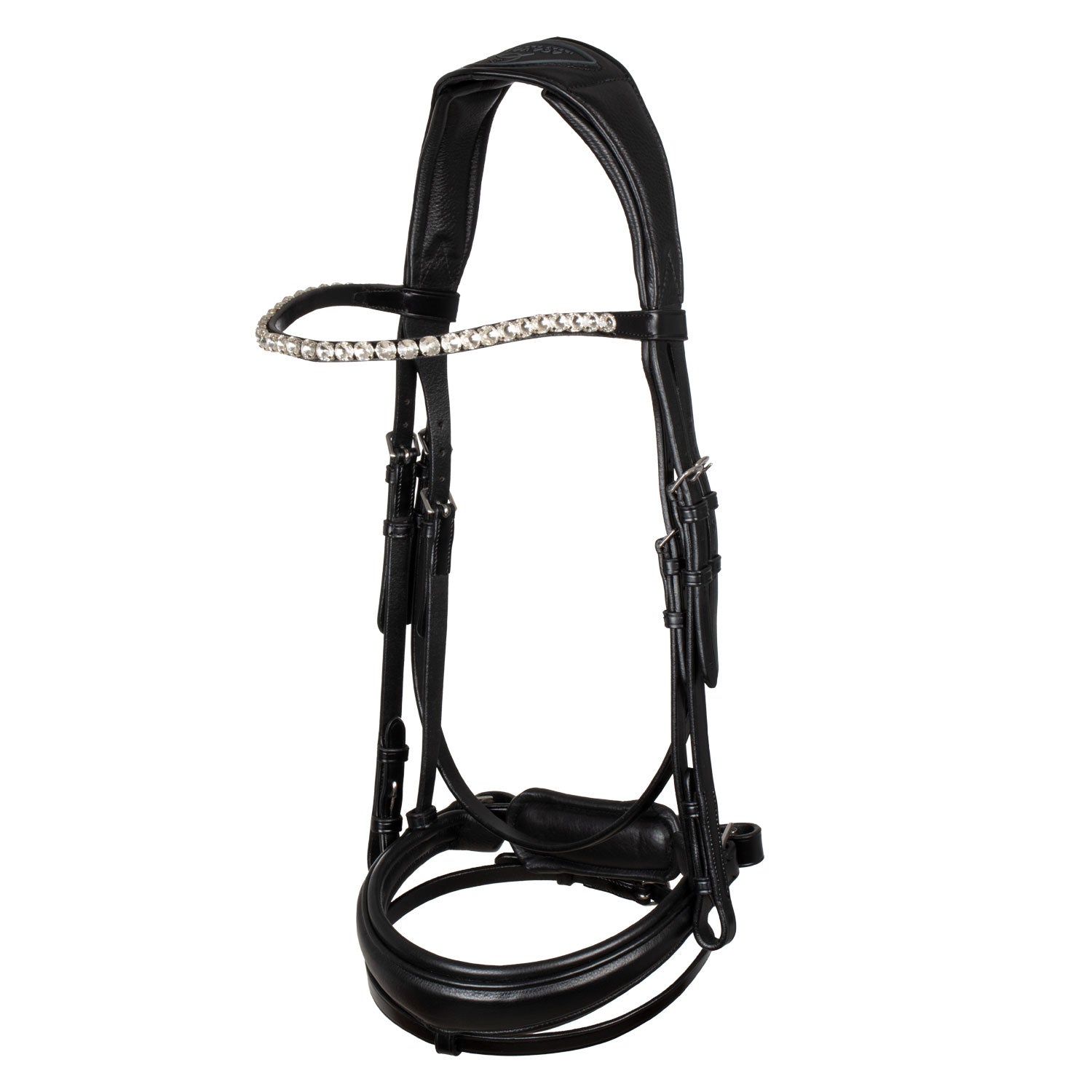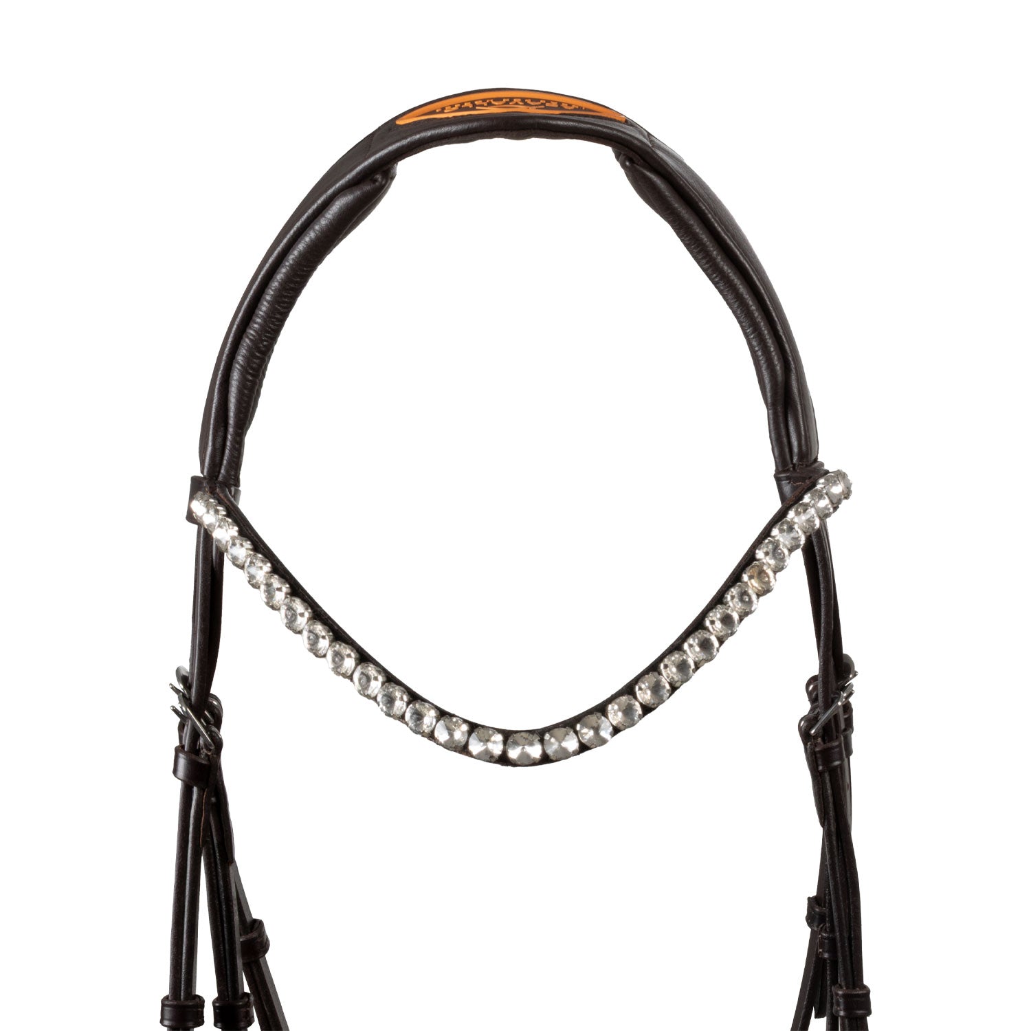 Crafted from premium Italian calfskin, the Acavallo Starry Night Bridle exemplifies expert artisan quality. Its anatomically shaped headpiece features dual lateral latex padding, relieving pressure on the horse’s skull for superior comfort. The diamond-covered browband adds a sophisticated sparkle, enhancing its elegant design. Equipped with durable stainless steel buckles, this bridle ensures secure fit and lasting performance. Combining refined style with thoughtful functionality, the Starry Night bridle prioritizes horse welfare without compromising on craftsmanship.