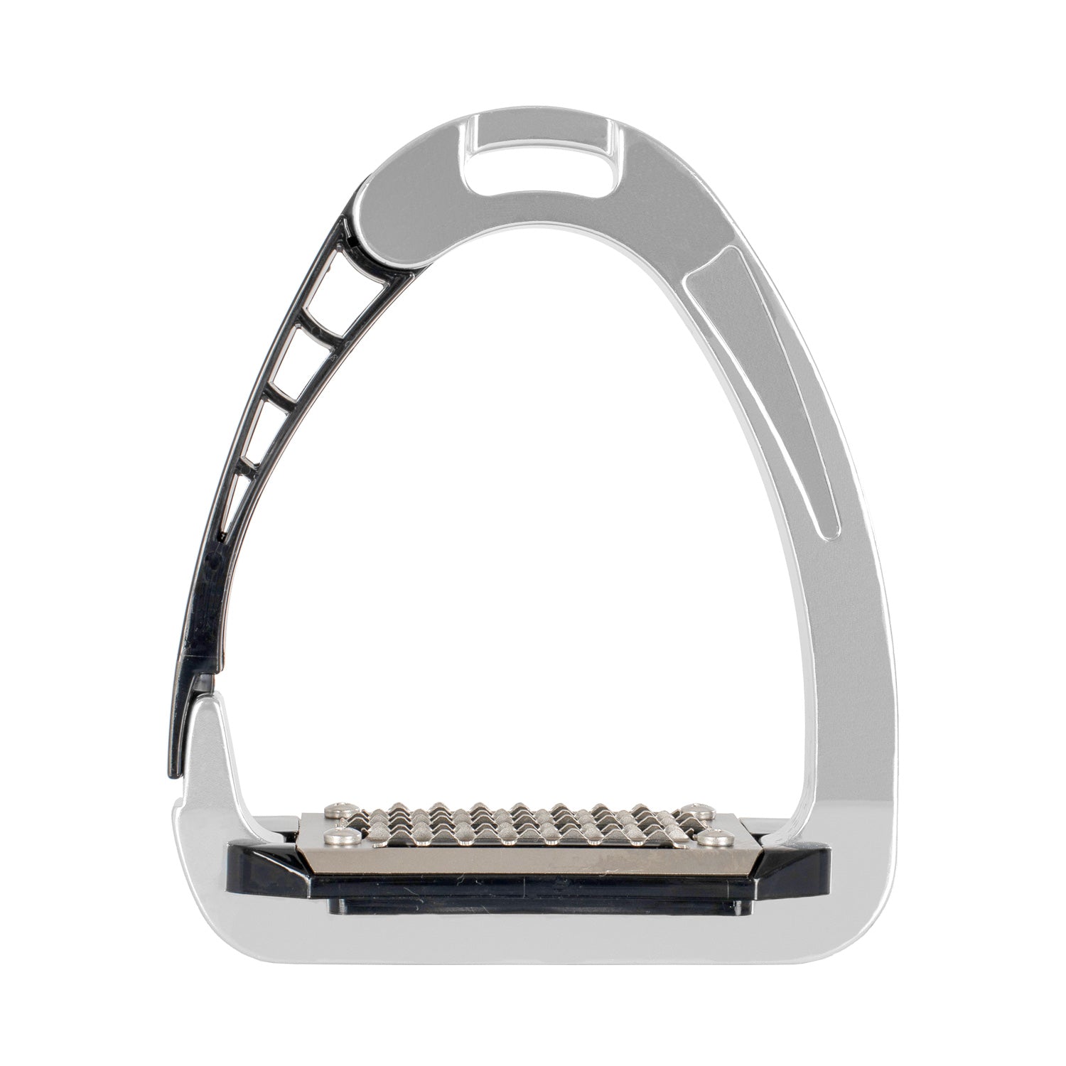 Crafted with high-tech metal and flexible polymers, they provide enhanced comfort and reduced stiffness compared to traditional stirrups. The stainless steel upper part, equipped with horizontal holes, ensures excellent grip in all conditions while safeguarding against corrosion.