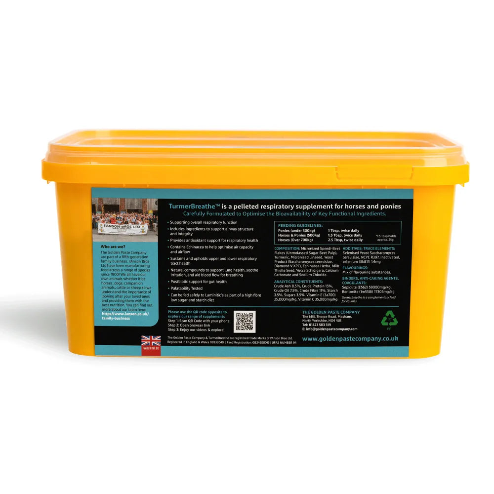 TurmerBreathe is a natural support for equine respiratory health. The specially crafted pelleted supplement is designed to support respiratory health throughout the year. Its formulation eliminates the need for multiple seasonal products, providing continuous support in all conditions. The easy-to-feed pellets can be added to daily meals or given by hand, ensuring effortless administration without altering feeding routines.