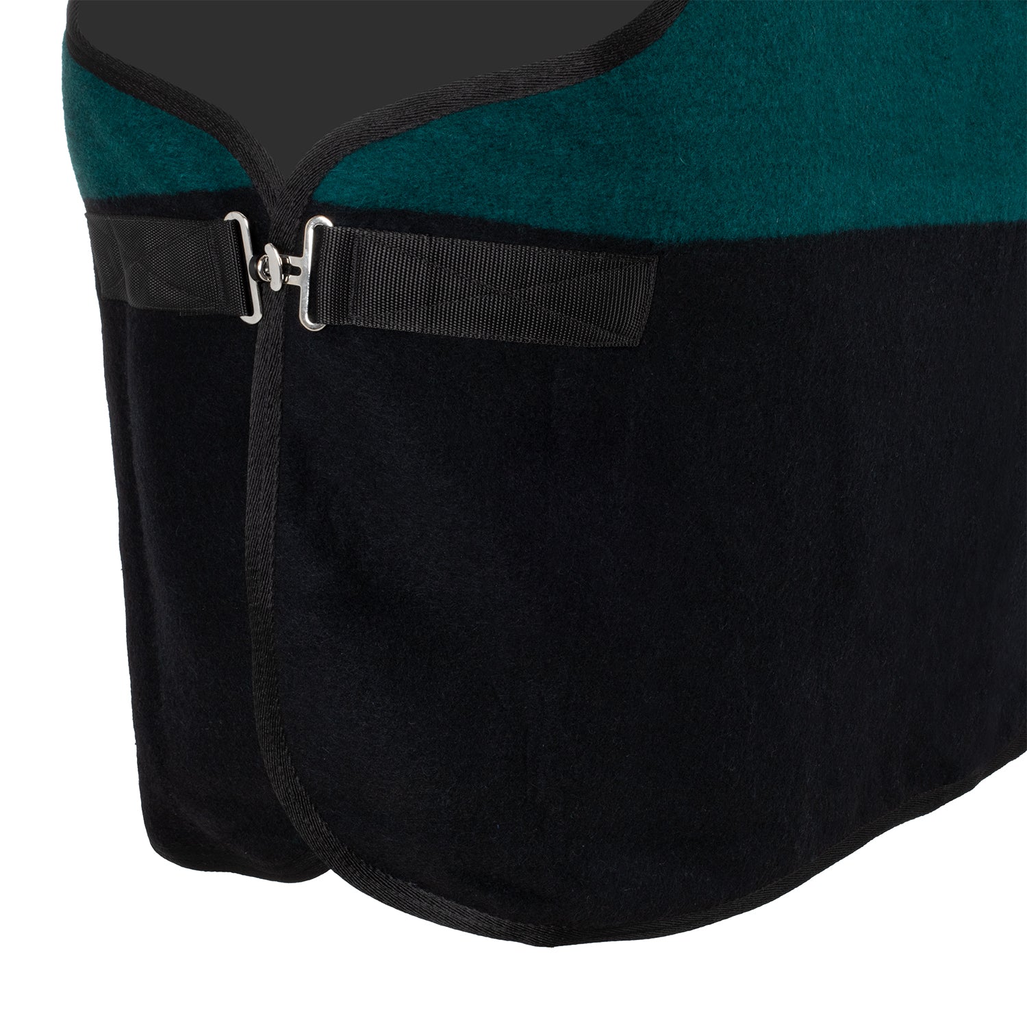 The Acavallo Wool Stable Rug 800G combines expert craftsmanship with practical warmth. Designed for cold months, its 800-gram wool filling ensures your horse stays comfortably insulated in the stable, during transport, or while preparing. The front chrome buckle closure effectively seals out cold air, protecting your horse’s sweat from chilling. Elegant embroidered details, including the Acavallo® logo and lettering on the rump and a refined white embroidery on the green band, add a sophisticated touch to this functional rug. Ideal for maintaining your horse’s comfort and style throughout winter.