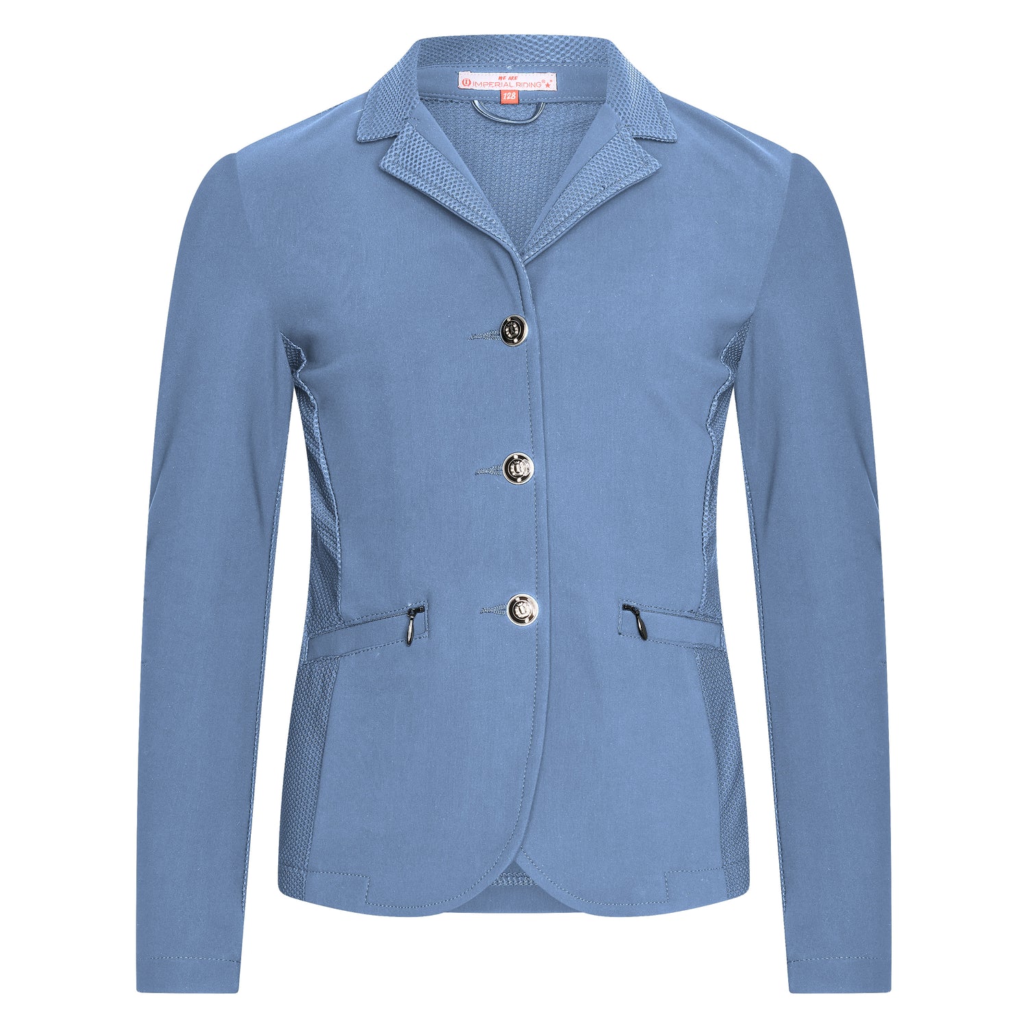 The Imperial Riding Air Mesh Children's Competition Jacket is perfect for young equestrians. With its 4 way stretch fabric and mesh combination, it offers maximum flexibility and breathability. The blazer features 4 branded metal buttons and glitter tape details, adding a touch of sparkle. The stretch lining and back slits ensure a comfortable fit, while the Rhinestone accents add a touch of glamour.