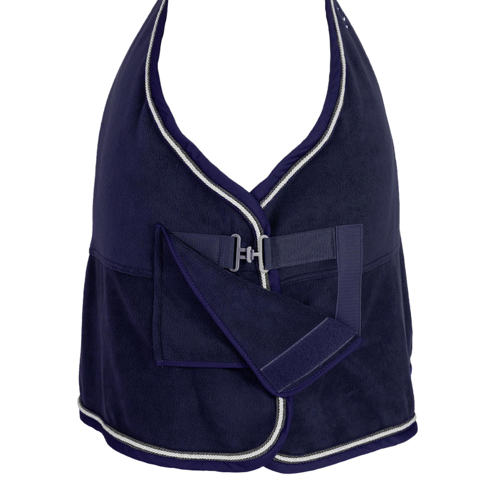 The Acavallo Fleece Stable Rug 800G delivers superior warmth and durability for your horse during cold weather. Crafted from soft, anti-pilling fleece, it’s perfect for stable use, transport, or training. The secure hook-and-loop front closure with a chrome buckle ensures a snug fit, while the removable fleece patch offers space for custom embroidery. With elegant collar embroidery adding a refined touch, this rug combines practicality and style for every equestrian need.