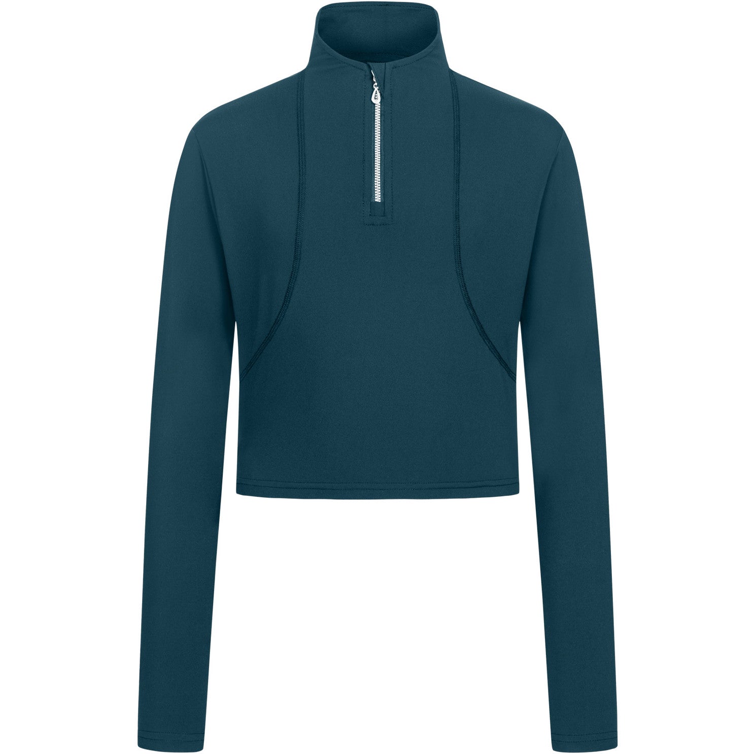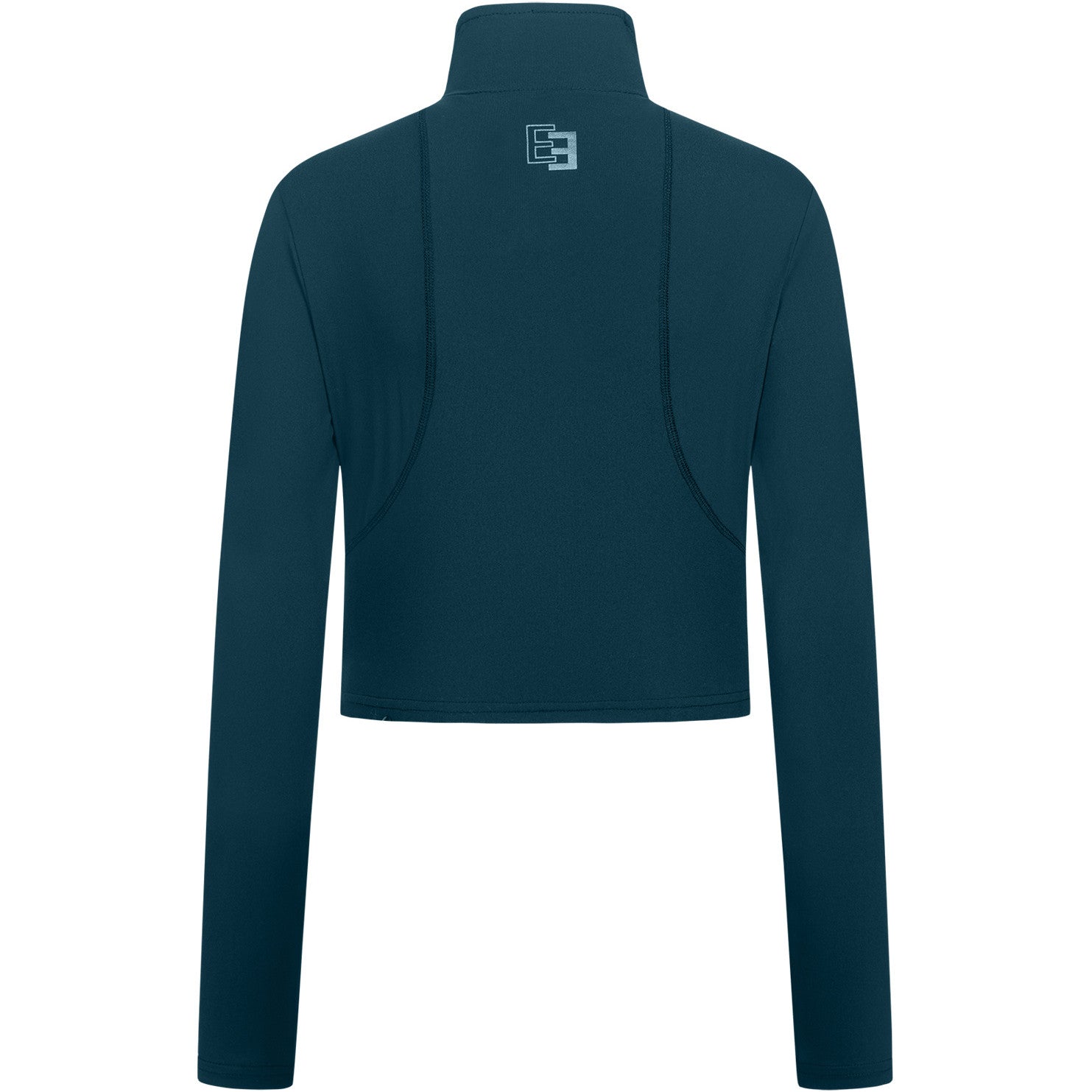The ELT Teens Alina Functional Shirt offers a loose, cropped fit designed for comfort and ease of movement. Crafted from breathable technical fabric, it ensures optimal ventilation during activity. Featuring a stand-up collar with a zip and chin guard, it provides added protection and a sleek look. Subtle logo prints on the right sleeve and upper back add a professional touch to this functional garment. Ideal for young riders seeking performance and style in one.