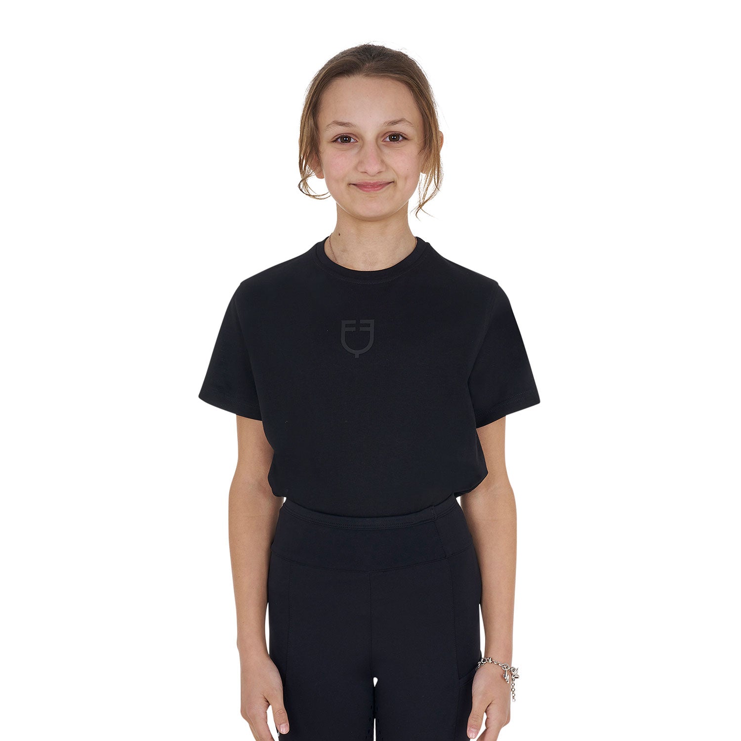 Equestro Girls' Basic Cotton T-Shirt With Tone On Tone Logo