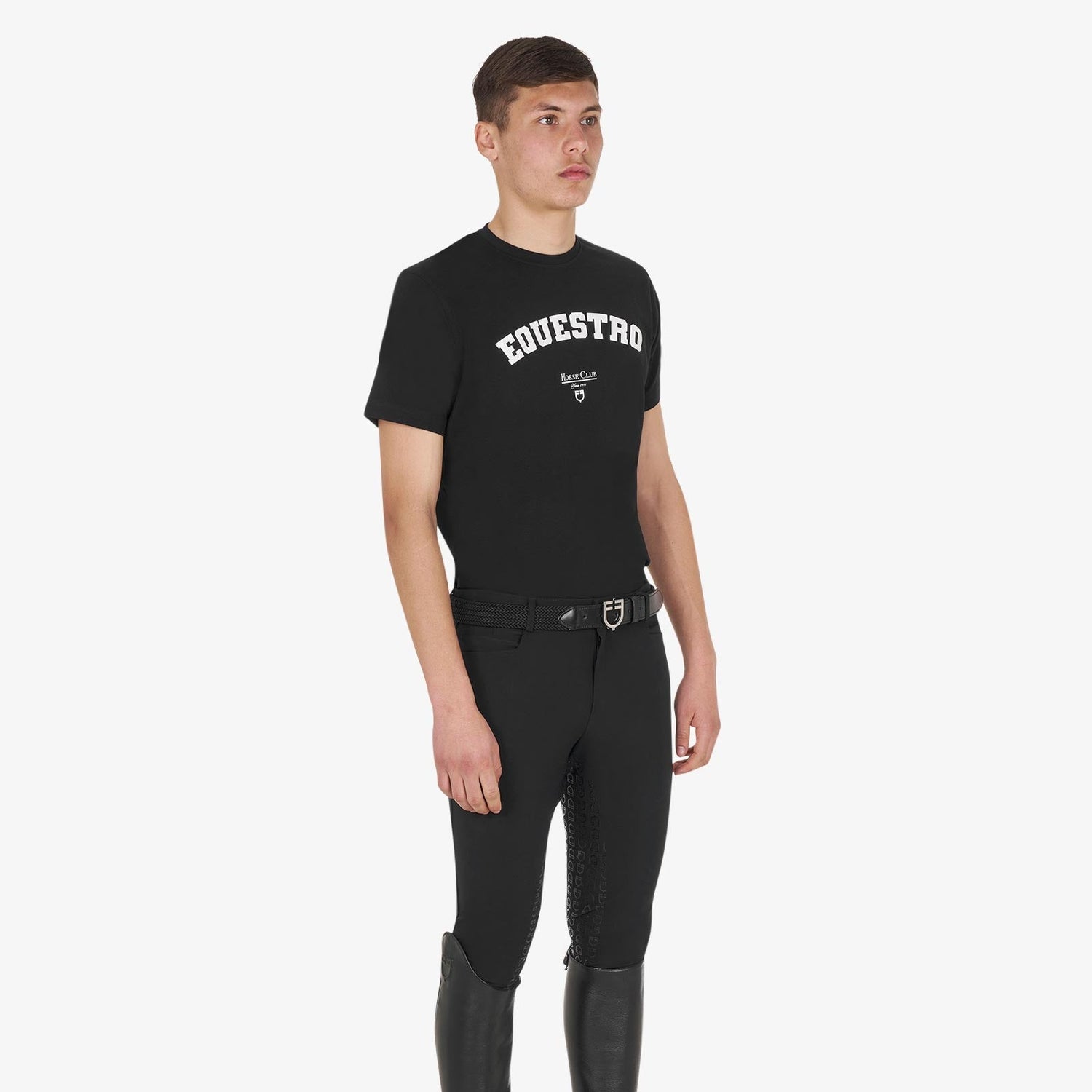 Experience comfort and style with the Equestro Men's Horse Club Cotton T-Shirt. Crafted from 100% high-quality cotton, this slim fit tee offers natural breathability and a soft touch, perfect for everyday wear. Its short sleeves and tailored cut provide a modern silhouette, while easy care instructions ensure lasting quality. Ideal for those who value both comfort and a sleek look.