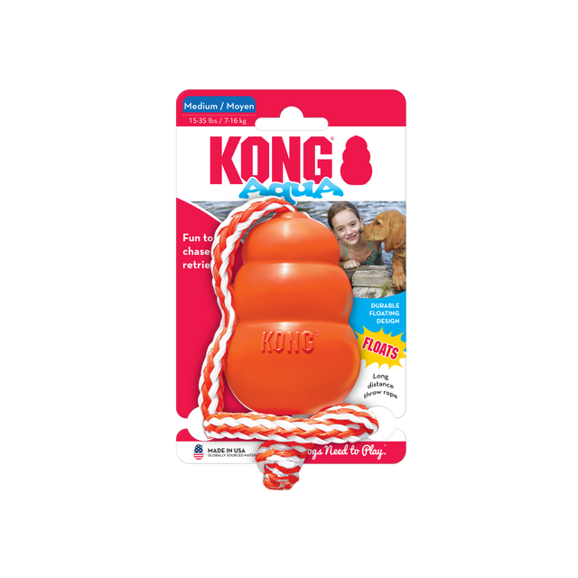 The KONG Aqua is a floating retrieval toy that promotes fun and exercise both in and out of water. The KONG Aqua has a foam core that keeps it floating while your dog swims out to fetch it.