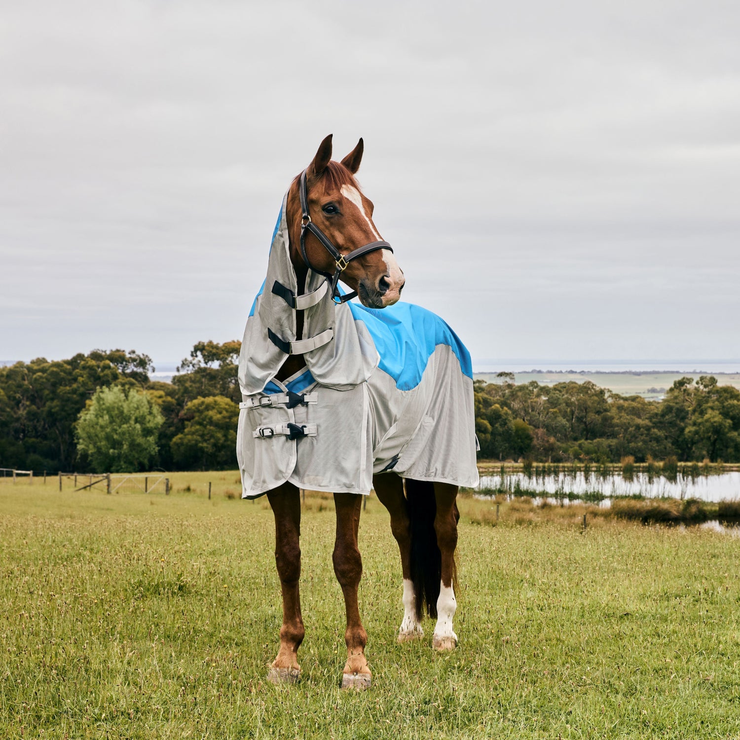 Versatility for those unpredictable showers, this is the perfect waterproof fly rug to keep your horse protected from rain and insects on warmer days while keeping them cool. Featuring a tough 600 denier ripstop waterproof upper panel with an open weave mesh lower to allow for airflow.