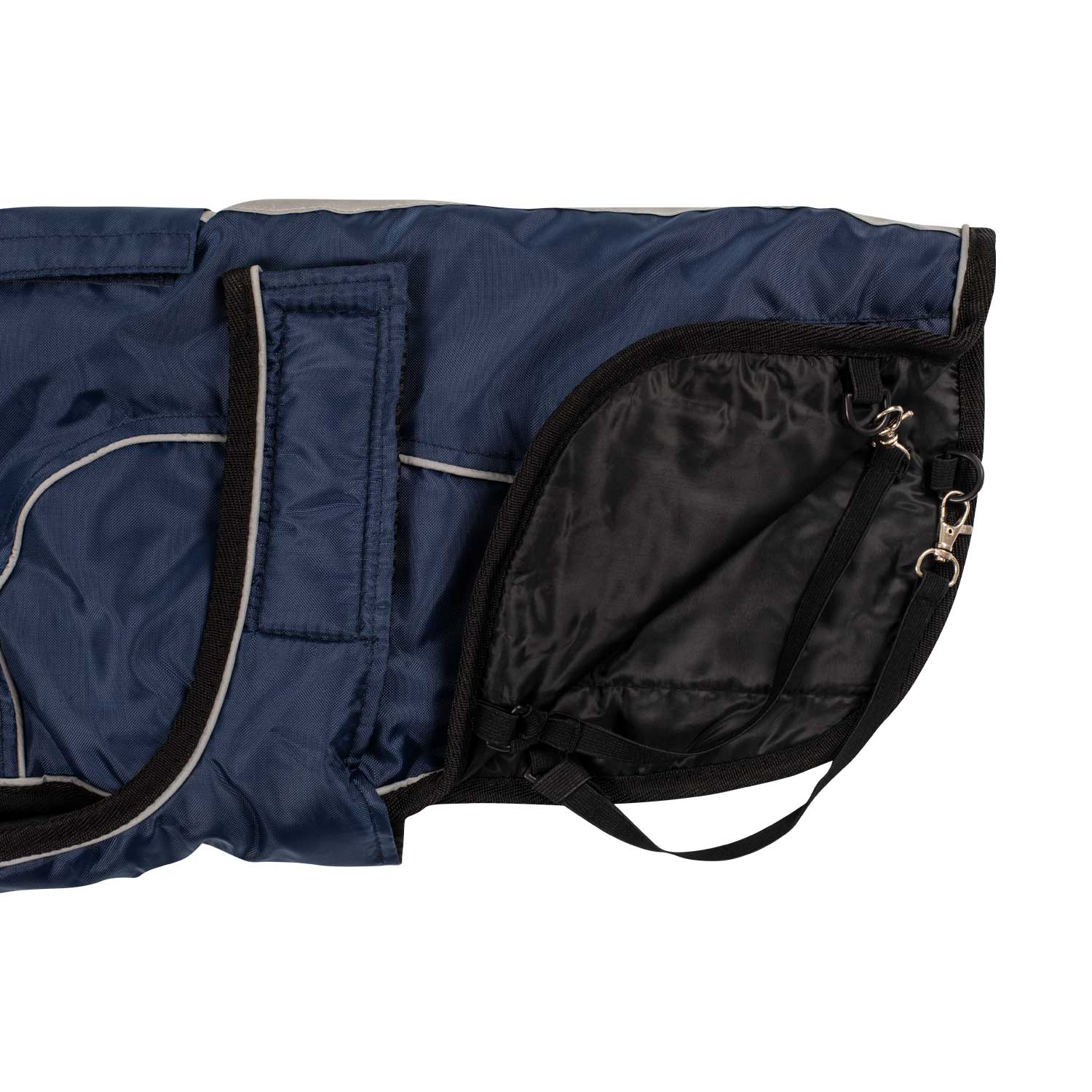 Ribe dog coat with reflective piping, designed for maximum comfort and freedom of movement.