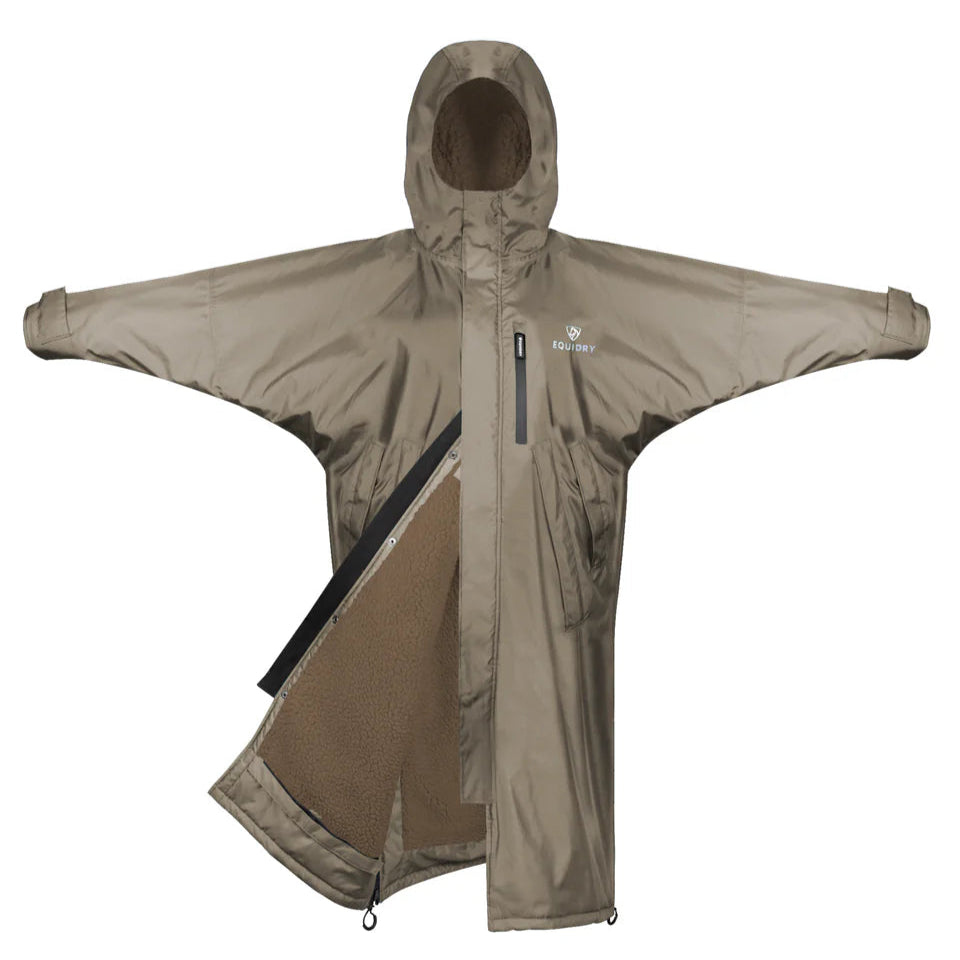 Stay warm, dry, and comfortable with the EQUIDRY Children's Thick Fleece Evolution coat. Designed to be oversized and worn full length, it offers exceptional waterproof protection with a 20,000mm rating and breathable fleece lining for all-day comfort. The coat fits over body protectors and features riding side zips that secure it in place while revealing storm skirts for extra leg coverage. Adjustable cuffs, multiple pockets, and internal embroidery access add practicality. Perfect for active children, this coat blends performance and style to keep them ready for any weather.