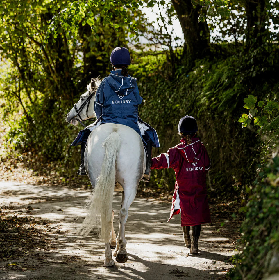 Stay warm and dry with the EQUIDRY Children's Thin Fleece Reflective Evolution coat. With an impressive 20,000mm waterproof rating and breathable construction, this generously sized coat fits easily over layers or body protectors. Reflective logos, trims, and concealed storm skirts improve visibility and provide added leg coverage, while riding side zips keep the coat secure in the saddle. Adjustable cuffs, multiple pockets, and convenient embroidery access complete this versatile performance jacket, perfect for young riders who need durability and safety in all weathers. Matching accessories are also available to finish the look.