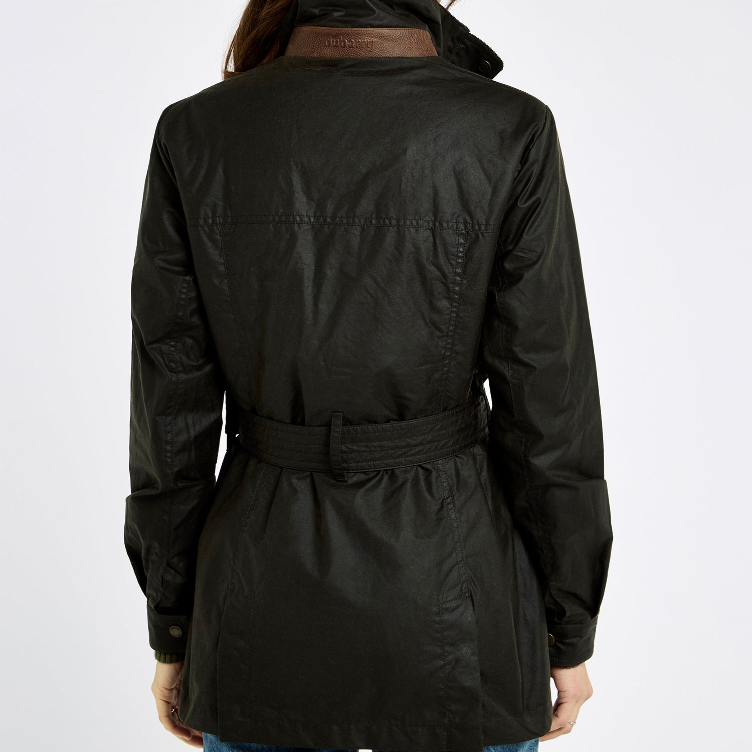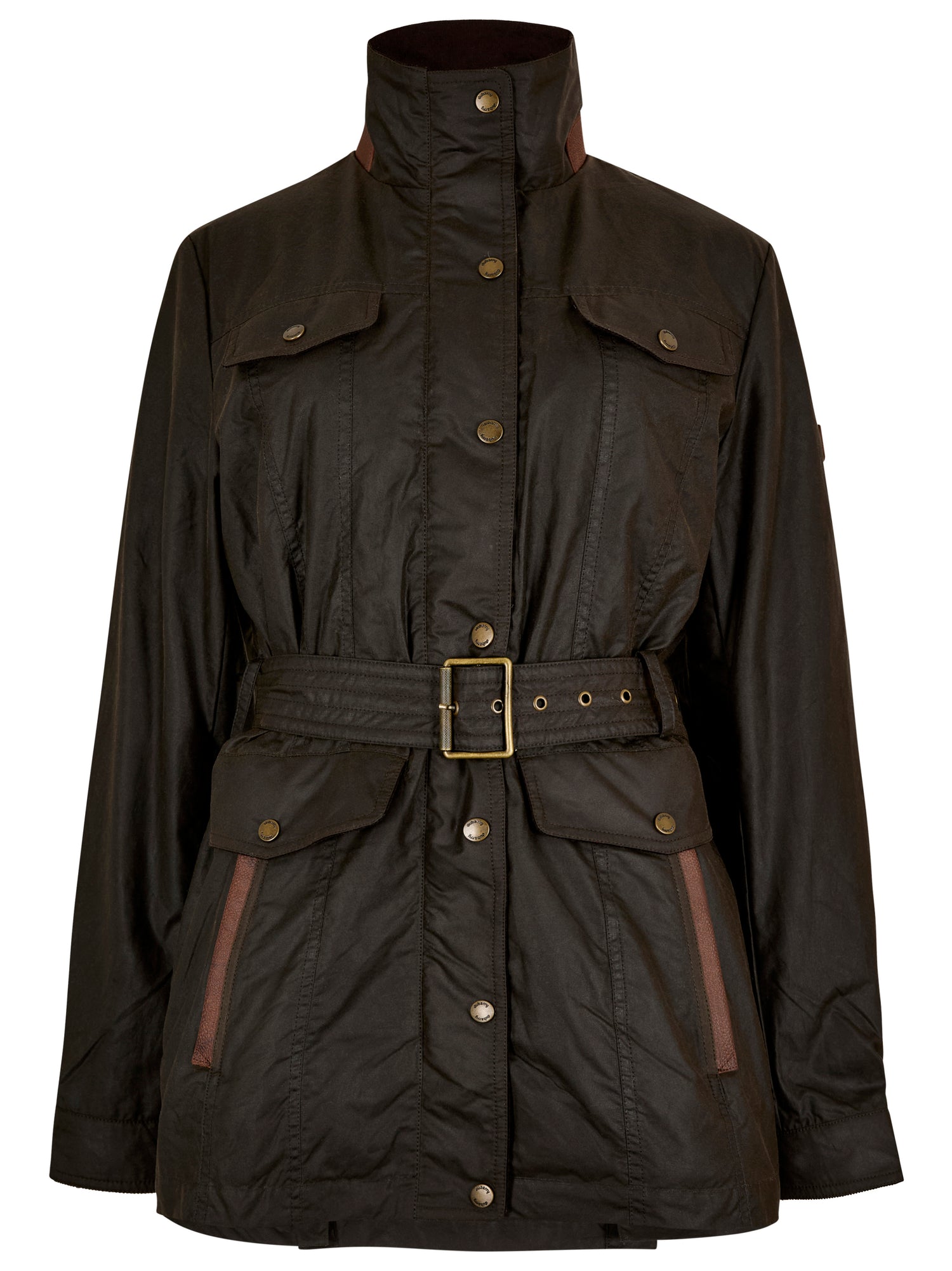 This densely woven wax cotton coat with a silkwax finish brings comfort and tailoring to a classic style. With multiple pockets and a belted design, it has a utility feel but real leather trims and panelled sherpa lining adds a contemporary, luxury tone. Dress with tonal corduroy jeans or denim and Dubarry boots for a casual yet chic autumn weekend ensemble.