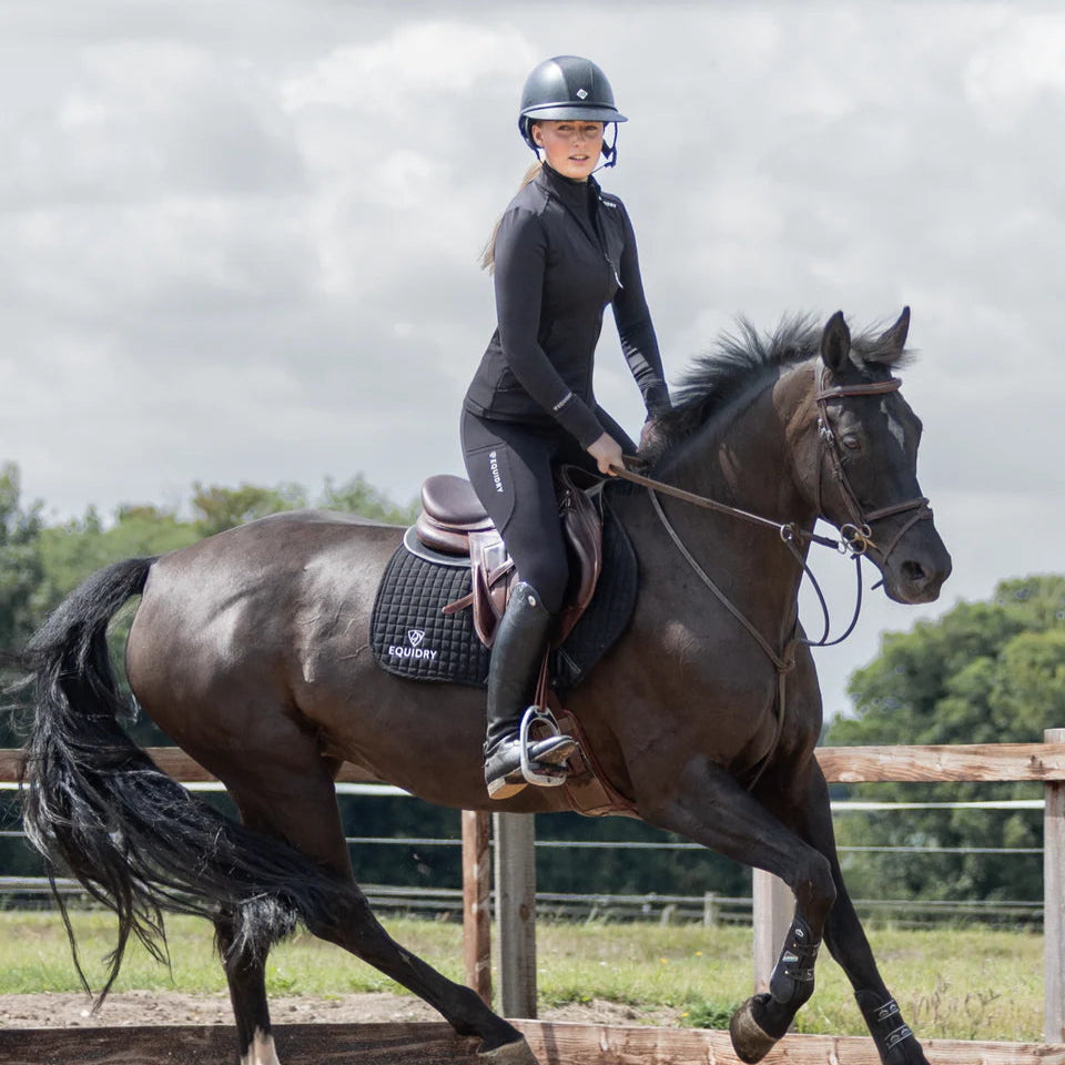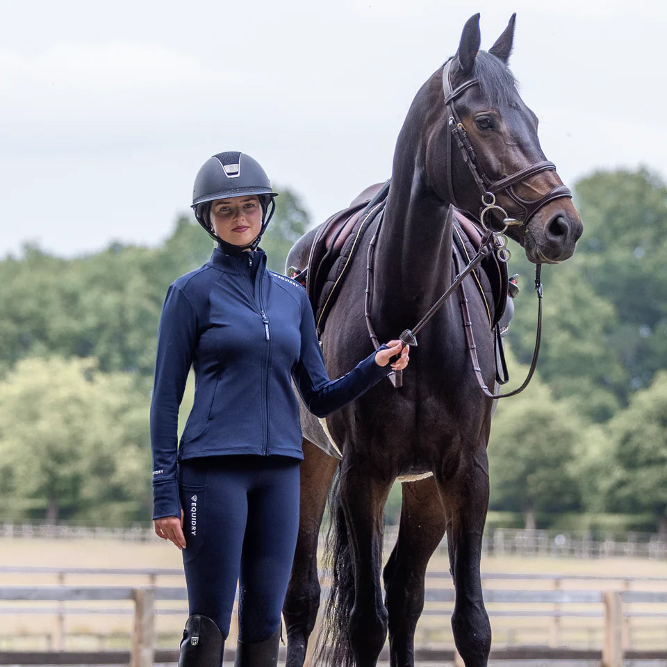 Elevate your riding with the EQUIDRY Zip-Up Top – a perfect fusion of base layer and jacket in one versatile piece. Designed to offer both comfort and practicality for all active pursuits, it provides the flexibility and breathability needed whether riding, working on the yard, or going for a run. Crafted from high-performance, water-repellent fabric, this top keeps you dry and protected in light rain or damp conditions, making it ideal for all-weather rides. The EQUIDRY Zip-Up Top pairs seamlessly with water-repellent leggings and base layers to create a complete, coordinated look. With its stylish yet practical design, it is the perfect addition to any active wardrobe.