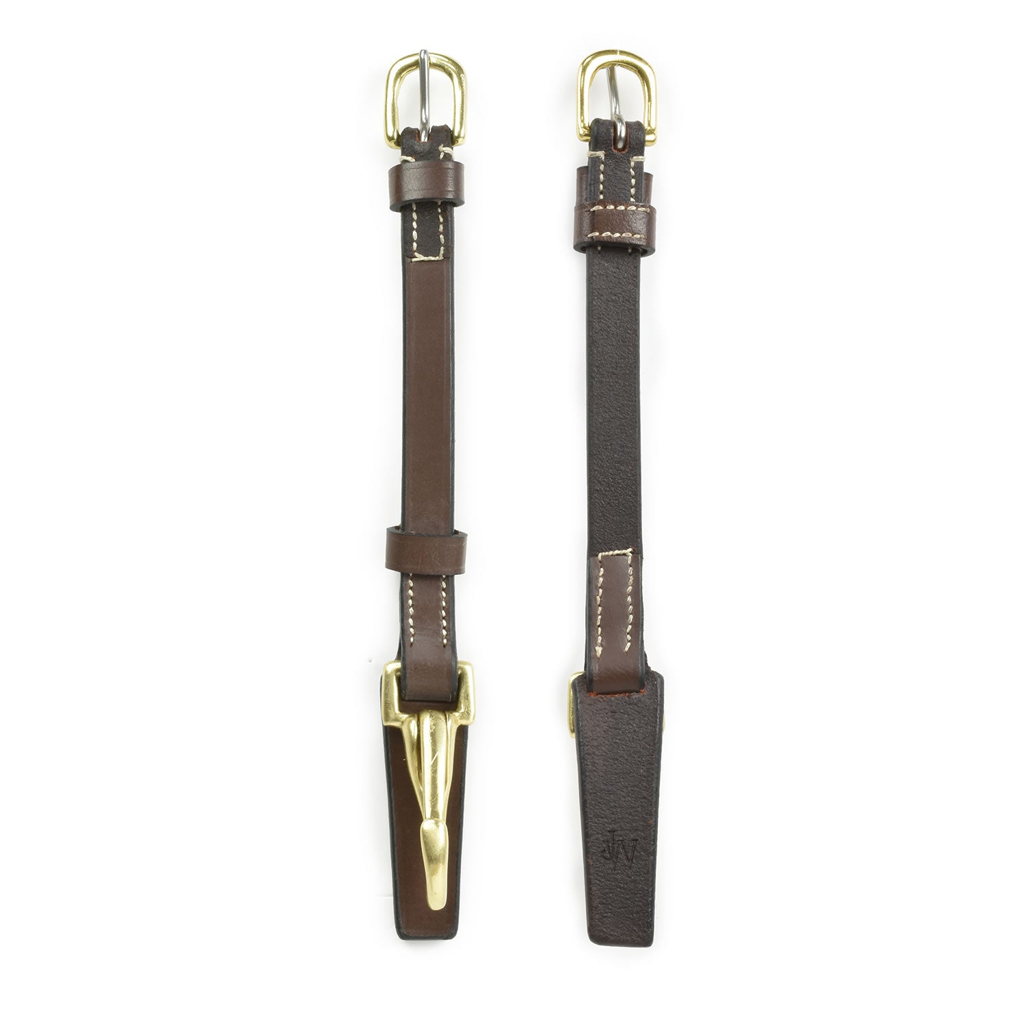 Clip-on and go with these handy clip, genuine leather cheekpieces. The solid clips have leather backing to protect your horse's face and is finished with a subtle JW embossing. Featuring contrast stitching and brass hardware.