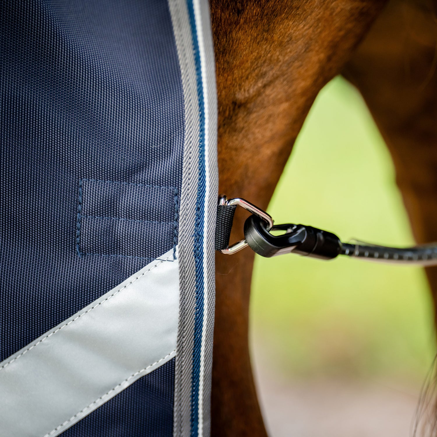 Other highlights include reflective strips for increased visibility, a waterproof tail flap for added protection, a wipe-clean tail cord, three crossed webbing surcingles with the Rambo® Safety Surcingle System for a secure fit, a Velcro sandwich hood attachment for optional hood compatibility, and leg strap compatibility for additional stability. The anti-static, anti-bacterial lining enhances both the comfort and hygiene of the rug.