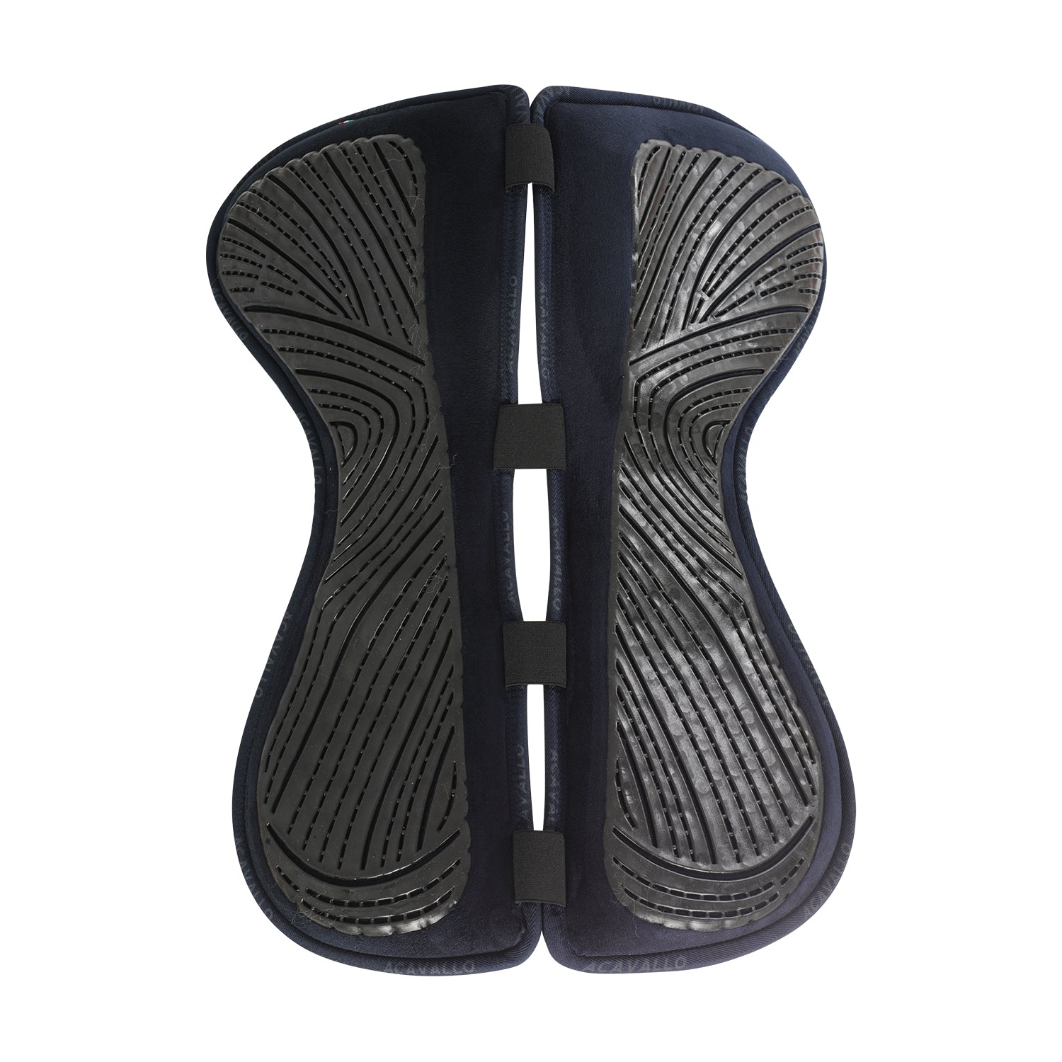 The Acavallo Memory Foam Jumping Close Contact Pad combines advanced design with superior comfort. Its split construction features classic withers and a free spine to reduce spinal pressure and enhance shoulder movement. Crafted from shock-absorbing memory foam and equipped with a non-slip gel grip, it ensures stable saddle placement and even pressure distribution. The tapered, anatomical shape provides a deep, contoured fit, promoting optimal comfort for your horse. Hypoallergenic and safe for direct skin contact, this pad works perfectly alone or with any English saddle and pad setup.