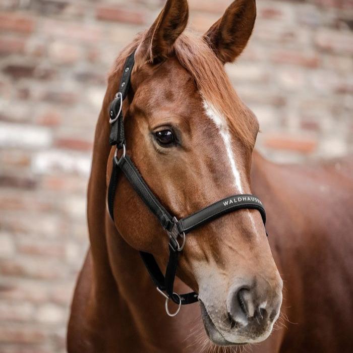 Quality halter with soft padding on neck and nose area as well as on the cheekpieces. Anatomical headpiece for pleasant wearer comfort. Multiple adjustments possible on chin strap and headpiece. With silver-coloured metal fittings.