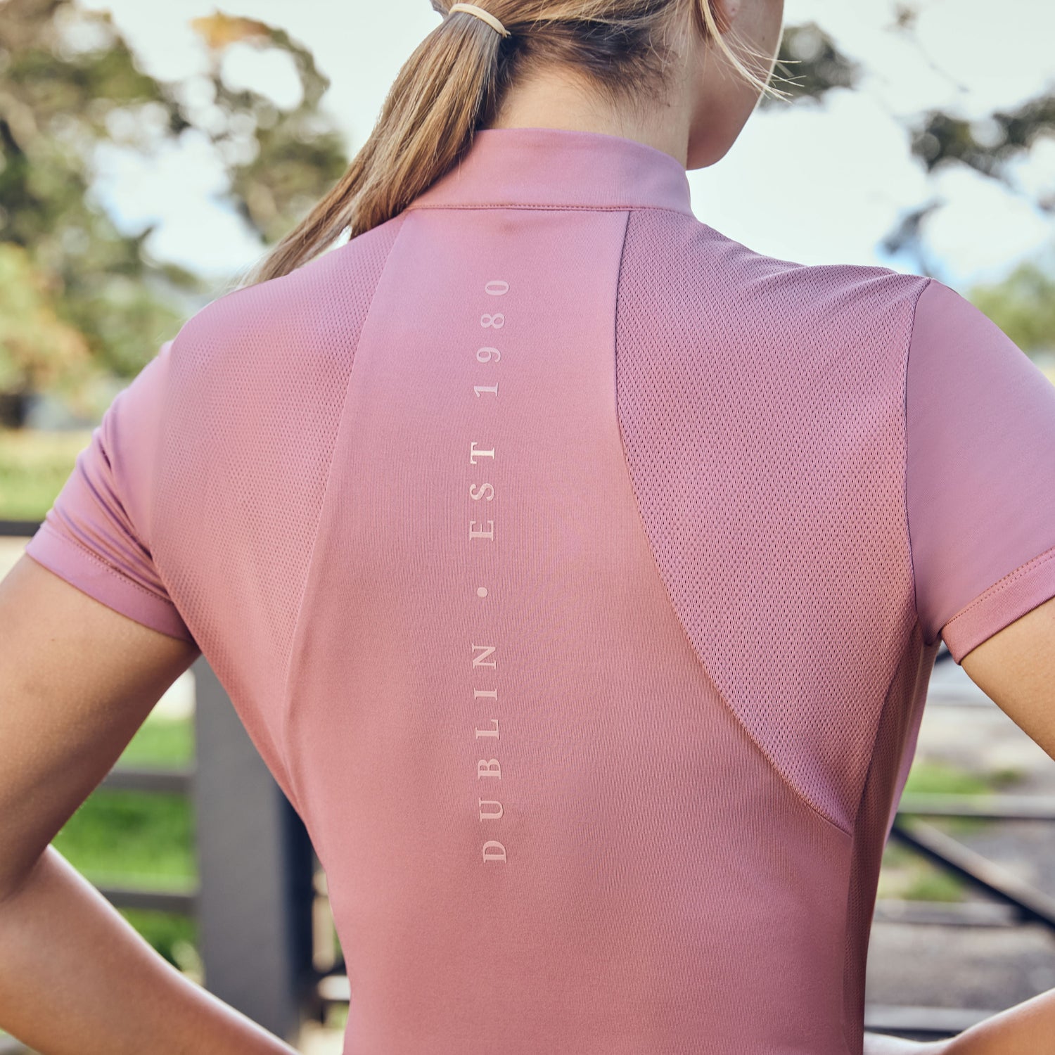 The Dublin 1/4 Zip Breathable Short Sleeve Top is a flattering styled riding top that offers Comfort Dry Technology that provides moisture control keeping you comfortable all day. Perforated panels placed where you need them most, enhance breathability and airflow as well as adding style and offers UPF 50+ sun protection. This top has a 1/4 zip placket and subtle Dublin 'D' silicon branding on the left chest.
