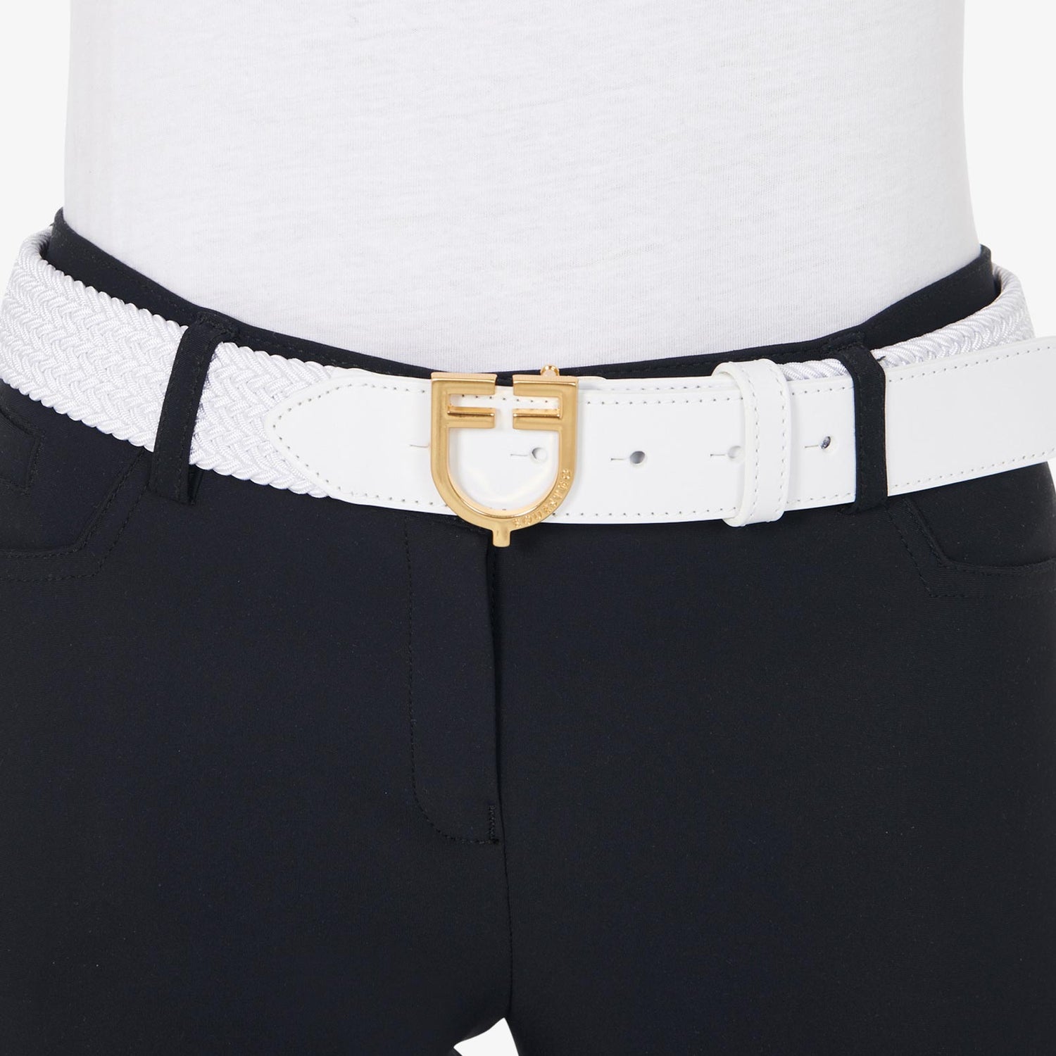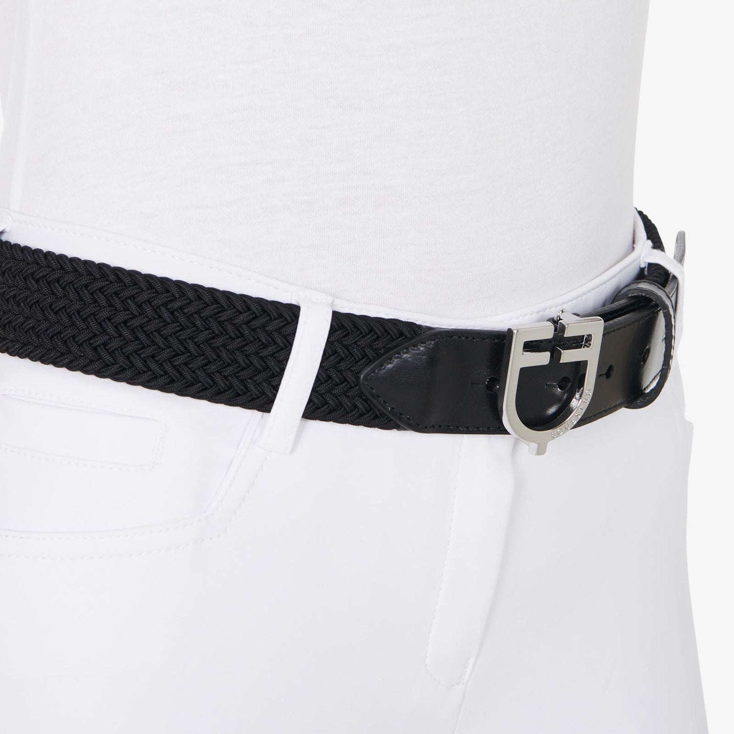 Experience unmatched comfort and style with the Equestro Leather Elastic Belt featuring a distinctive logoed buckle. Crafted from soft leather combined with elastic fabric, this belt offers flexibility and durability ideal for both competitions and everyday training. Its blend of leather, nylon, elastane, and steel ensures a secure fit without sacrificing comfort. Easy to maintain, simply clean with a soft, dry cloth—no washing or ironing needed. Elevate your equestrian wardrobe with a belt designed to perform as hard as you do.
