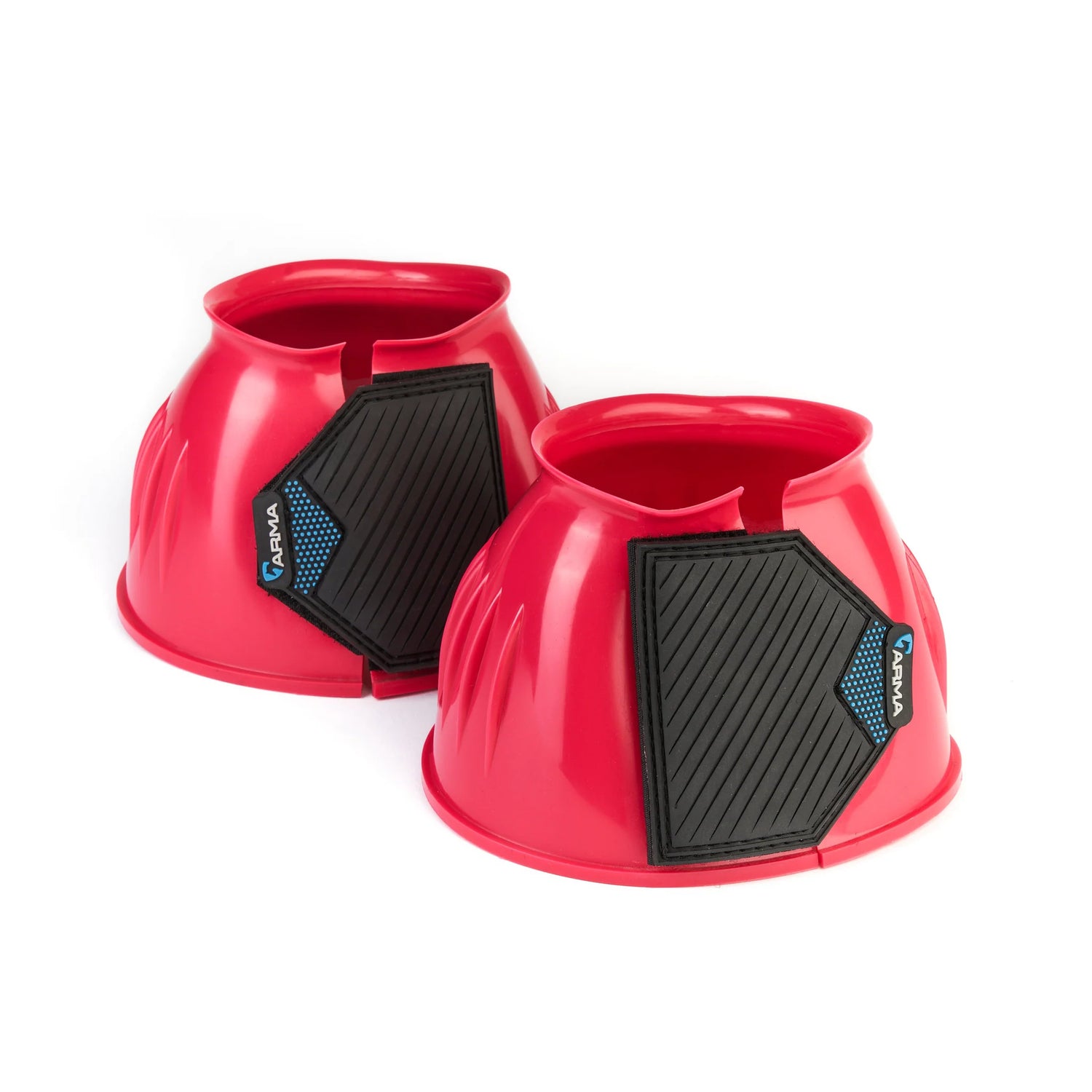 Ideal for schooling, exercise and turnout. Durable over reach boots in bright glossy colours. The flexible material deflects blows to protect the heel bulb. Easy grip double sided touch close straps secure the boot with reassurance. Attractive wide rubber straps are finished with the ARMA logo.
