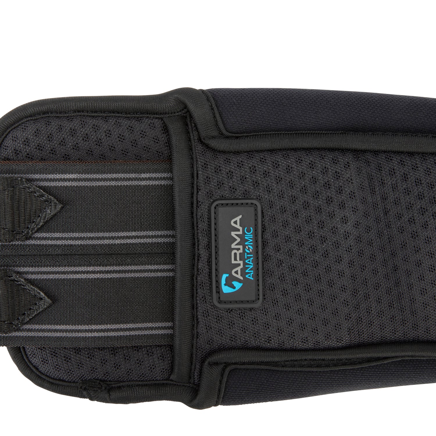 The ARMA Performance Atherstone Girth is designed with carefully engineered fabrics to promote dryness and enhance comfort for the horse. Built around a non-stretch nylon web core for strength, a heat-responsive memory foam lining molds to the body's contours for a bespoke fit. Soft roll-away edges remove the risk of pinching and create a cushion effect.