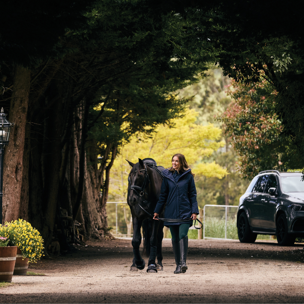 The Dublin Everyday Waterproof Jacket is your go-to for unpredictable weather. This longline jacket offers comfortable waterproof and breathable protection with a concealed hood with toggles which can be tucked away when riding for safety. This coat is thoughtfully designed for the equestrian, with a front centre waterproof 2 way zip with concealed placket and magnetic back hem panel allowing the jacket to open over the saddle.